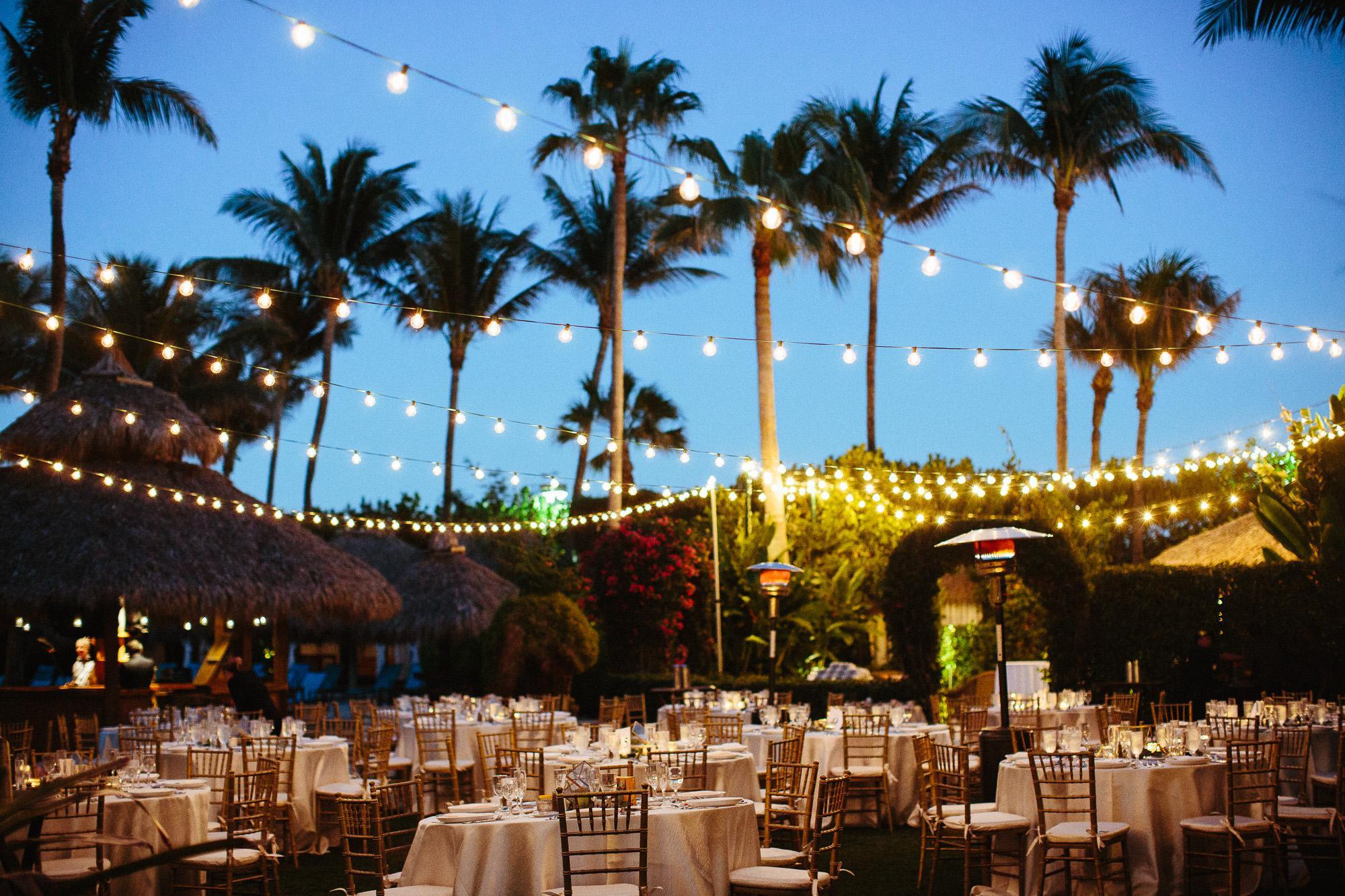 Our verdant South Lawn is perfect for dining under the sunshine or stars and can be combined with our poolside cabanas and tiki huts to accommodate extra guests. This tropical garden setting hosts up to 200 for receptions or 150 people seated for a meal.