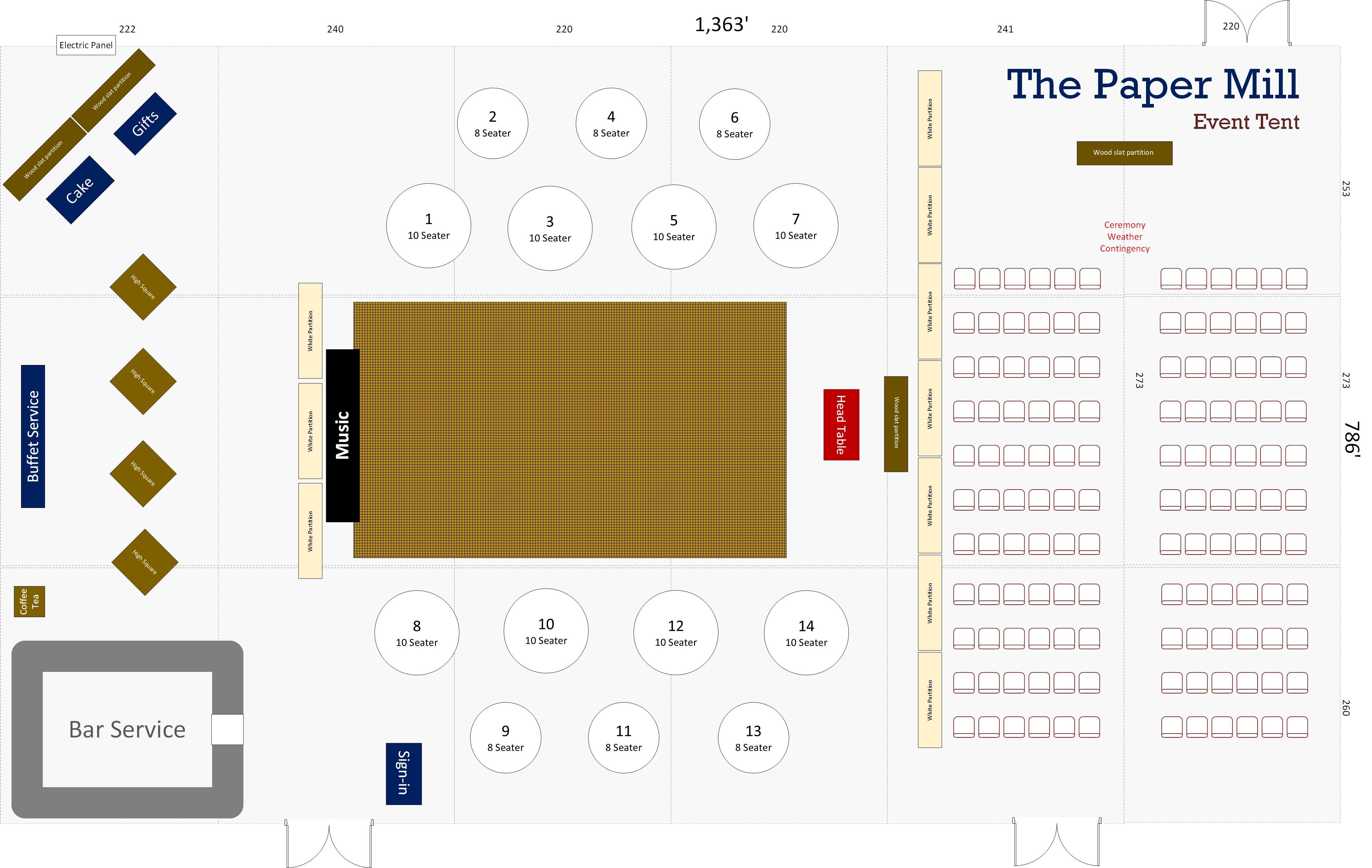 The Grand Event Tent is a beautiful, grand space for truly special celebrations. Flexible to be configured for your special times.