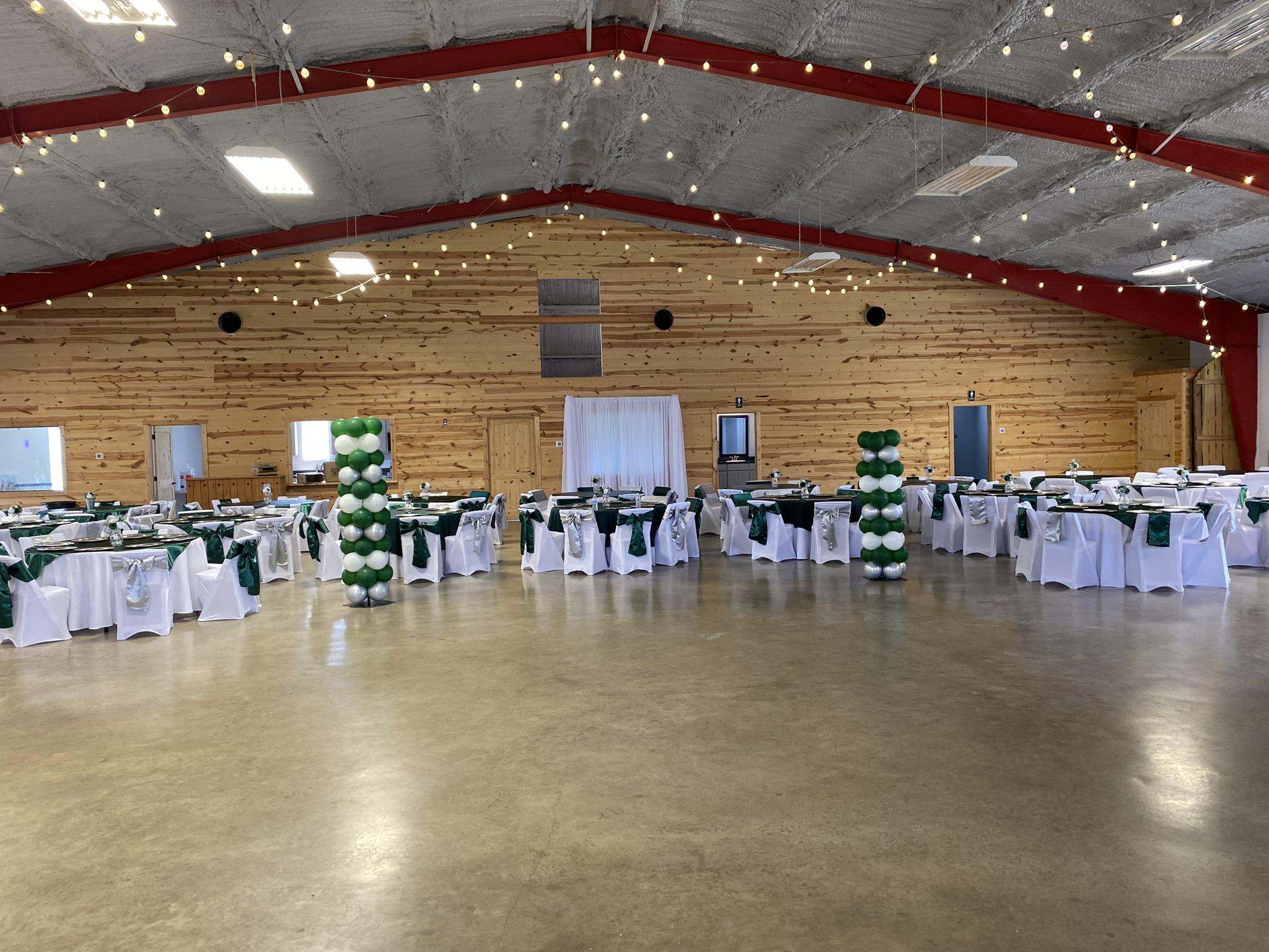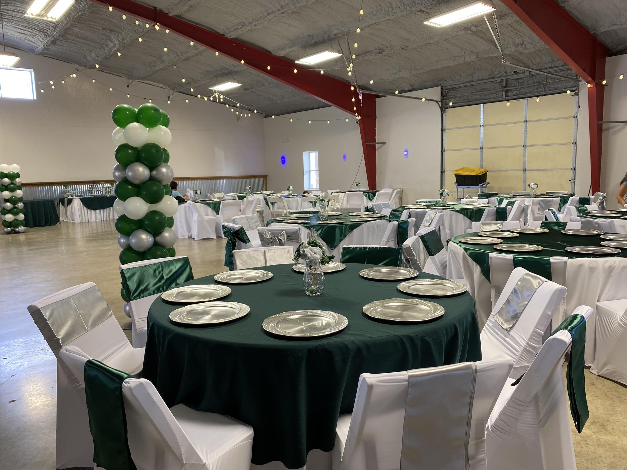 Event Venue and multipurpose facility located in 35 acres on US HWY 380 at Greenville TX. The Party Venue has 8000 square feet of conditioned space with plenty of additional room outdoors with paved porches and parking. The Party Venue has 8000 square feet of out side party area with Artificial Turf and Gazebo The versatile space will accommodate Quinceaneras, Weddings, Receptions, Graduation parties, Retirement parties, Birthday parties, Reunions, Banquets, Memorials, Meetings, Corporate functions and School functions, etc.