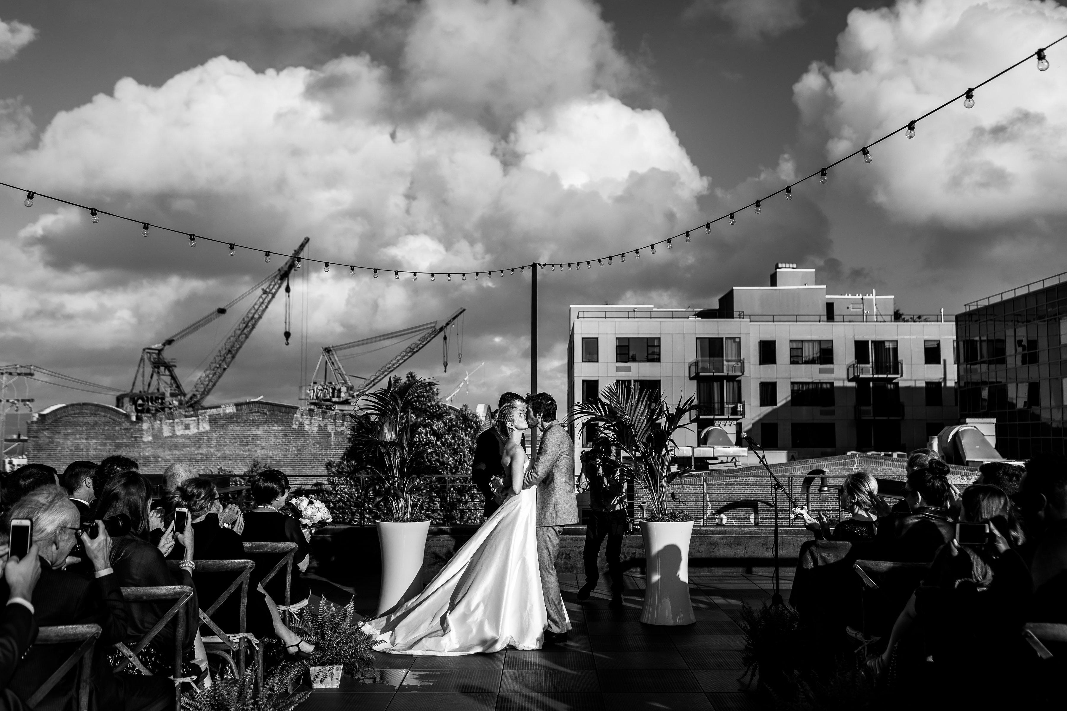 The Pearl is located in the heart of one of San Francisco's most historical and culturally rich neighborhoods, Dogpatch. Designed with both form and function, The Pearl is partnered with some of the Bay Area’s top industry players to offer guests in-house versatility that goes beyond the expectations of any private venue. Complete with state-of-the-art lighting and audiovisual capabilities, gorgeous rooftop views of The Bay, and permanent art installations by Alexis Laurent, the 9,000+ square foot space is an industrial charm waiting to be transformed by your wedding vision. Accommodating up to 800 guests, The Pearl has a main floor, mezzanine, rooftop, catering kitchen, and a top notch in-house bar program featuring the finest selections of local beer, wine, and premium spirits.