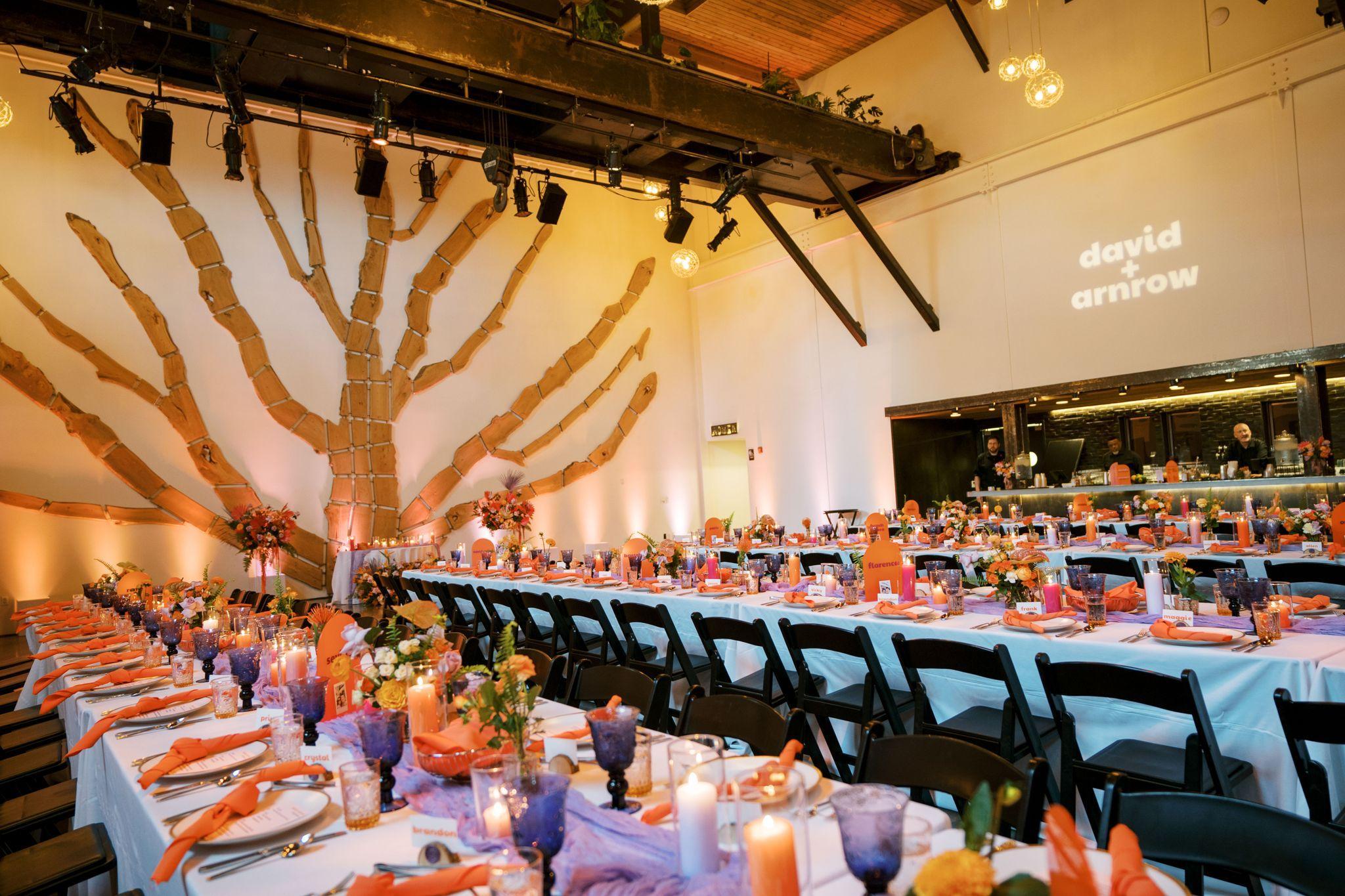Large blank canvas space perfect for your core programming, reception, or indoor ceremony. This room has direct access to the main bar, kitchen, back-of-house, and green room space.