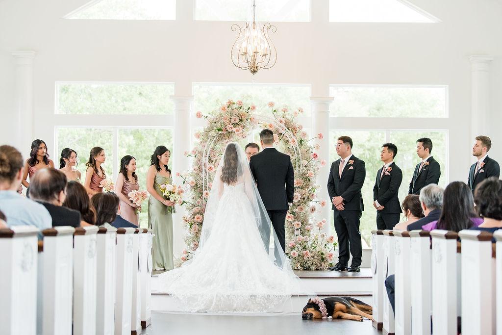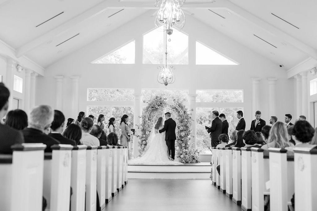 Bright white chapel with incredible natural light makes it a photographers dream back drop for wedding ceremony and bridal pictures.