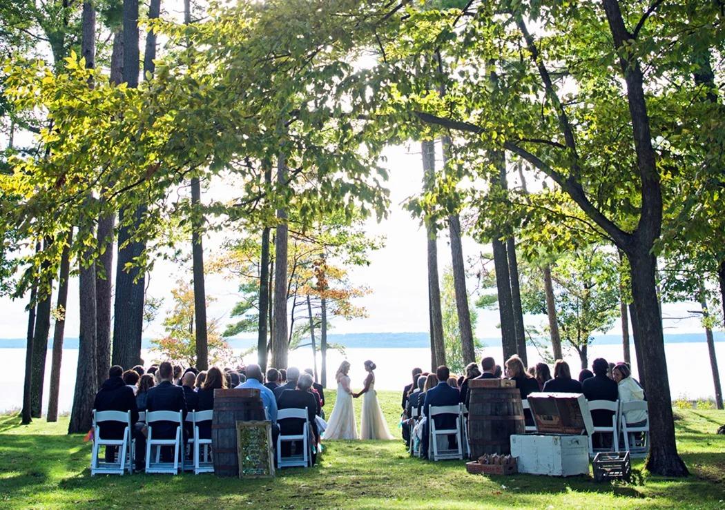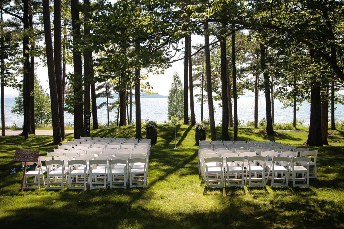 We reserve our ceremony spaces for those couples who host both the reception and ceremony on property. Our estate provides unparalleled ceremony locations. Our great lawn will provide your guests an opportunity to sit among our majestic trees while enjoying stunning views of the West Grand Traverse Bay, Power Island and Bower’s Harbor.