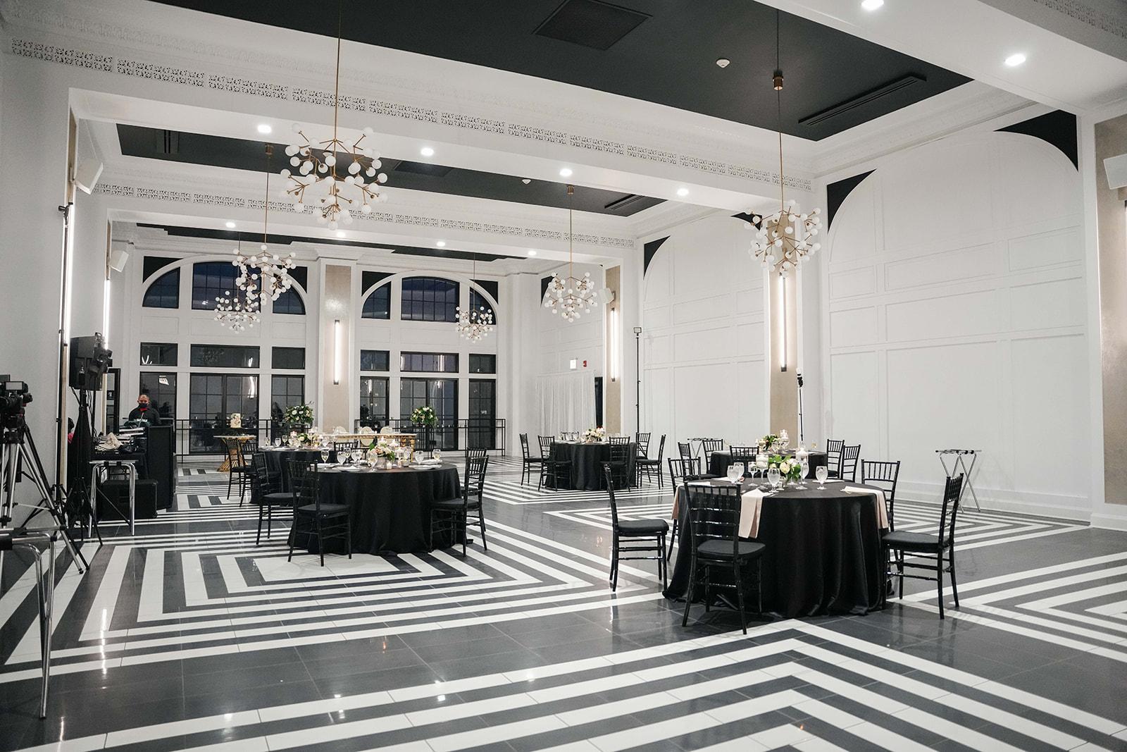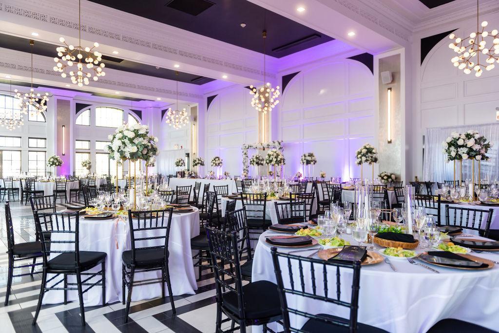 - Use of VIP Suite and attached outdoor terrace - Round and rectangle tables, black Chiavari chairs, cabarets, hightops, and a half-moon sweetheart table - Dimmable chandeliers, can lights, and wall sconces - State-of-the-art sound system with Bluetooth technology