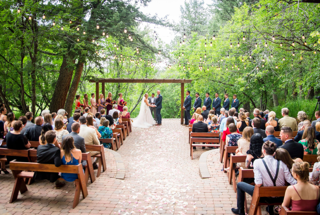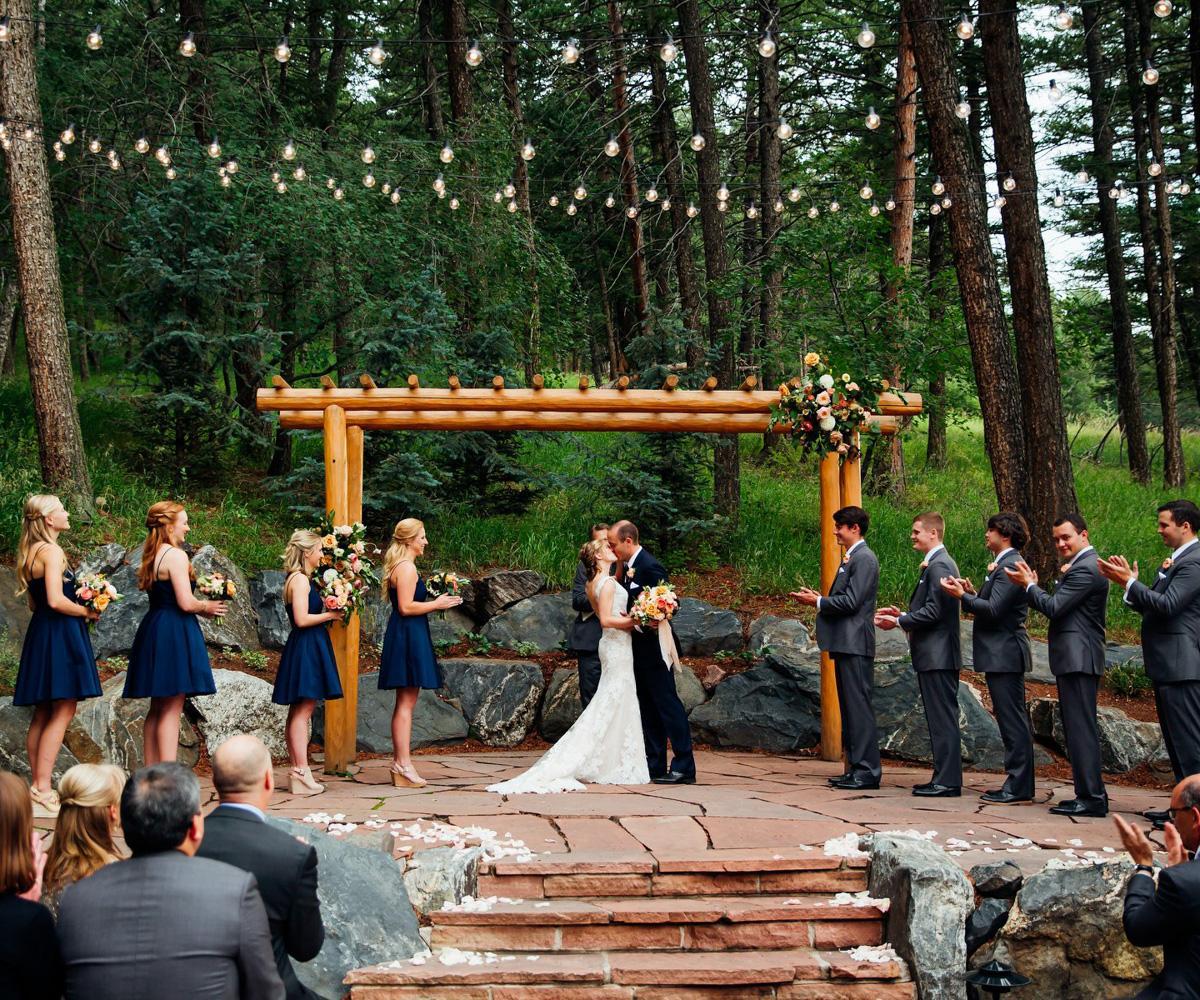 Enjoy the crisp mountain air as you walk down the aisle in our beautiful Aspen wedding terrace. The charming cobblestone path lined with greenery and mature trees welcomes you to a private and secluded space, ideal for you and your soon-to-be spouse to say "I Do." You'll love this private mountain oasis for its rustic bench seats, secluded feel, and surrounding forest. To express your personal style, adorn the wood arbor with rich floral or greenery that will complement the beauty around you.