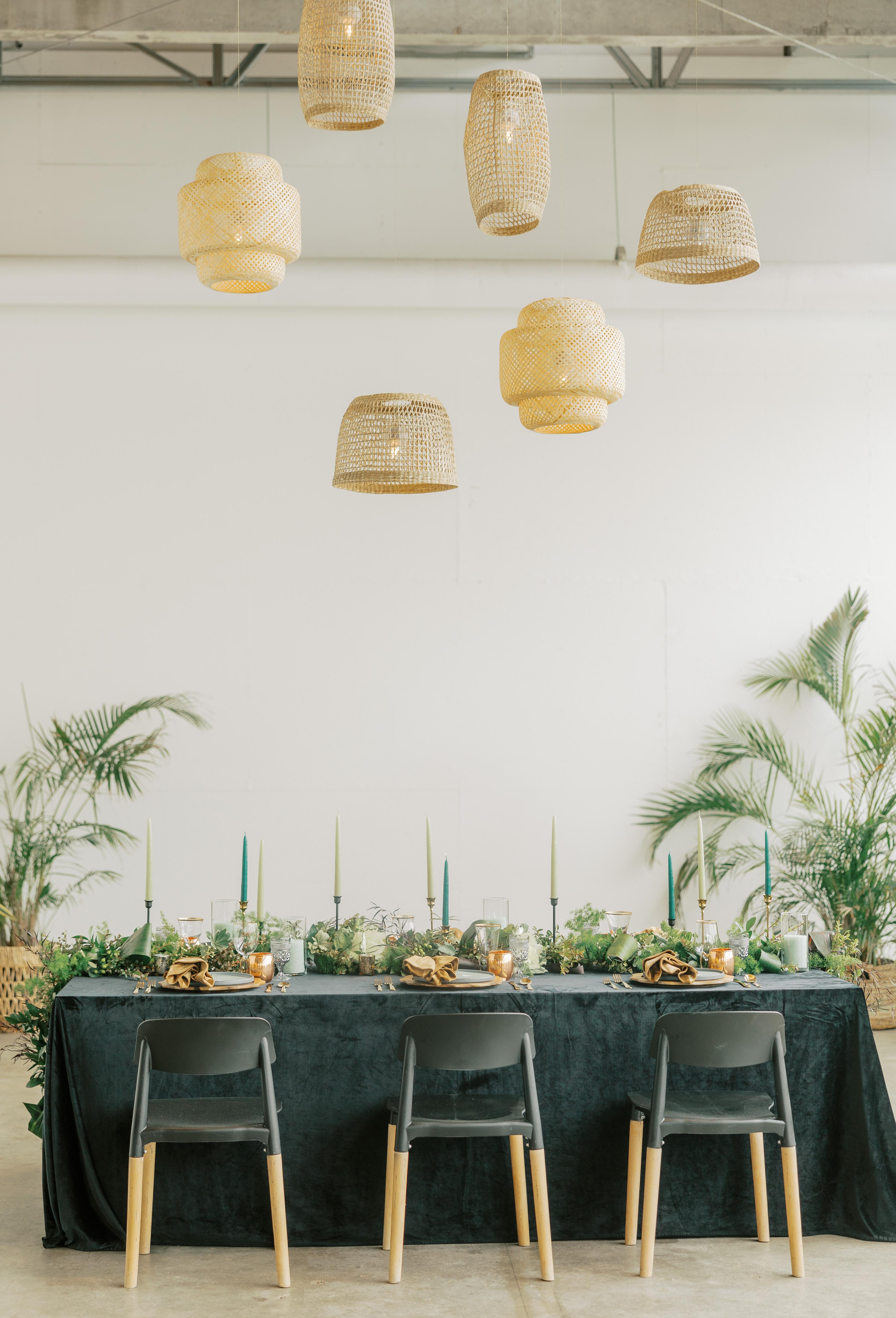 Dimmers for total lighting customization, flexible floor plan, kitchen access and built-in botanical catering bar for aesthetic food and beverage service