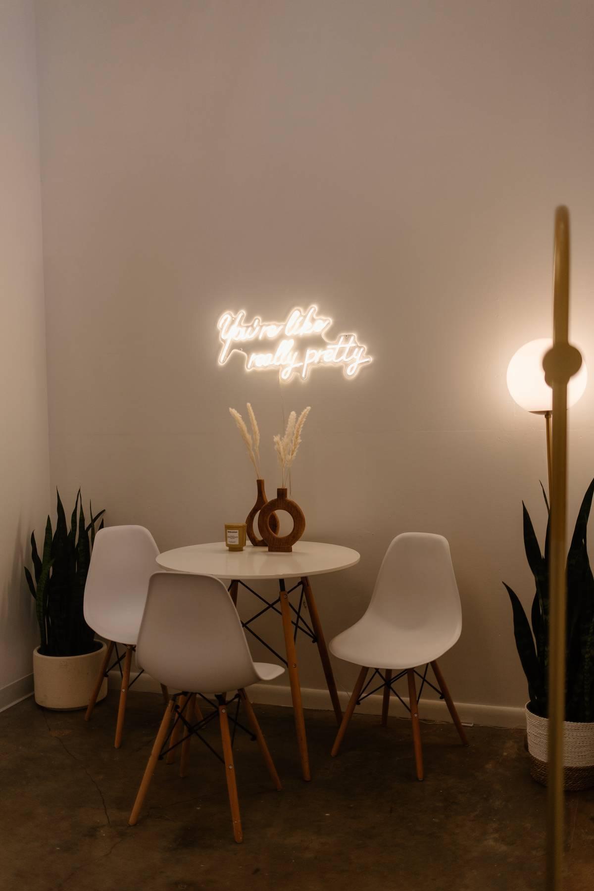 Your new favorite space featuring glowing neon, modern art, and an evening vibe that is unique and intimate.