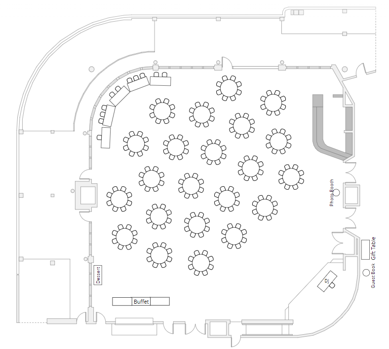 I had no idea my community center was so beautiful! The windows gave the best backdrop, the bar was intentionally placed and detailed to perfection! The space was so beautiful on its own that we didn't have to lug in loads of decorations. The built in spot for the DJ was perfect! Comfortably fit our 175 people for dinner and dancing. The staff was knowledgeable and not overwhelming. Stupid good value! I loved having my wedding here!