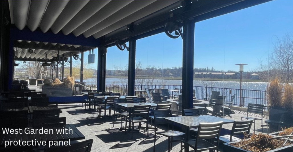 During moderate weather, the West Garden Patio can be enclosed with clear, protective siding allowing your group to still utilize the space while maintaining our gorgeous views!