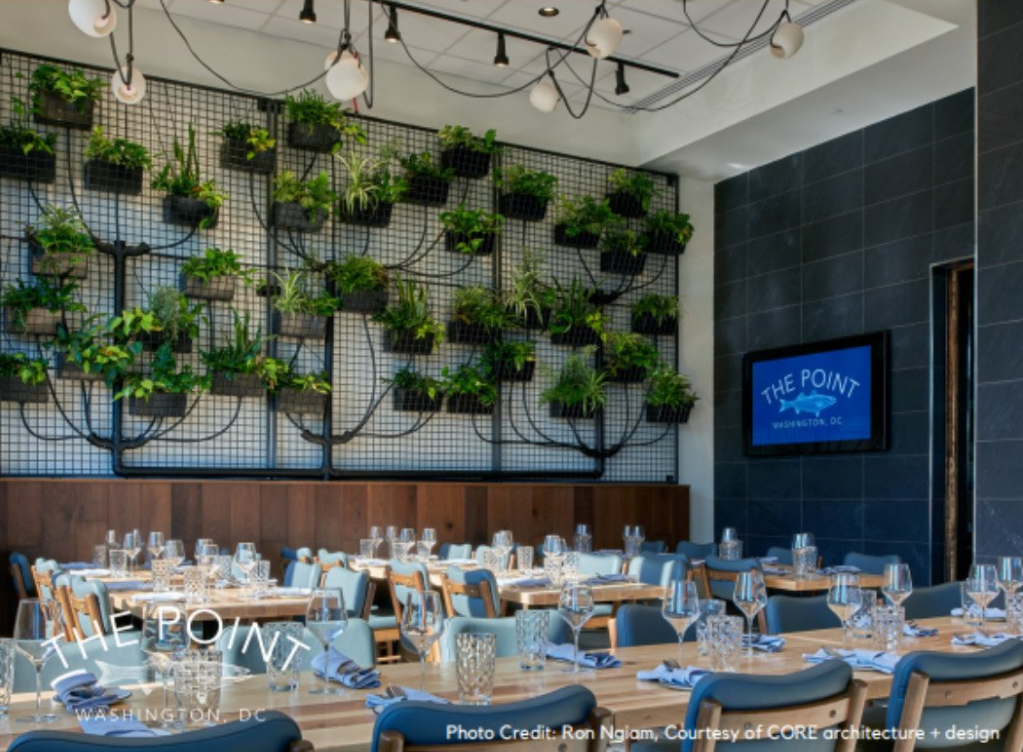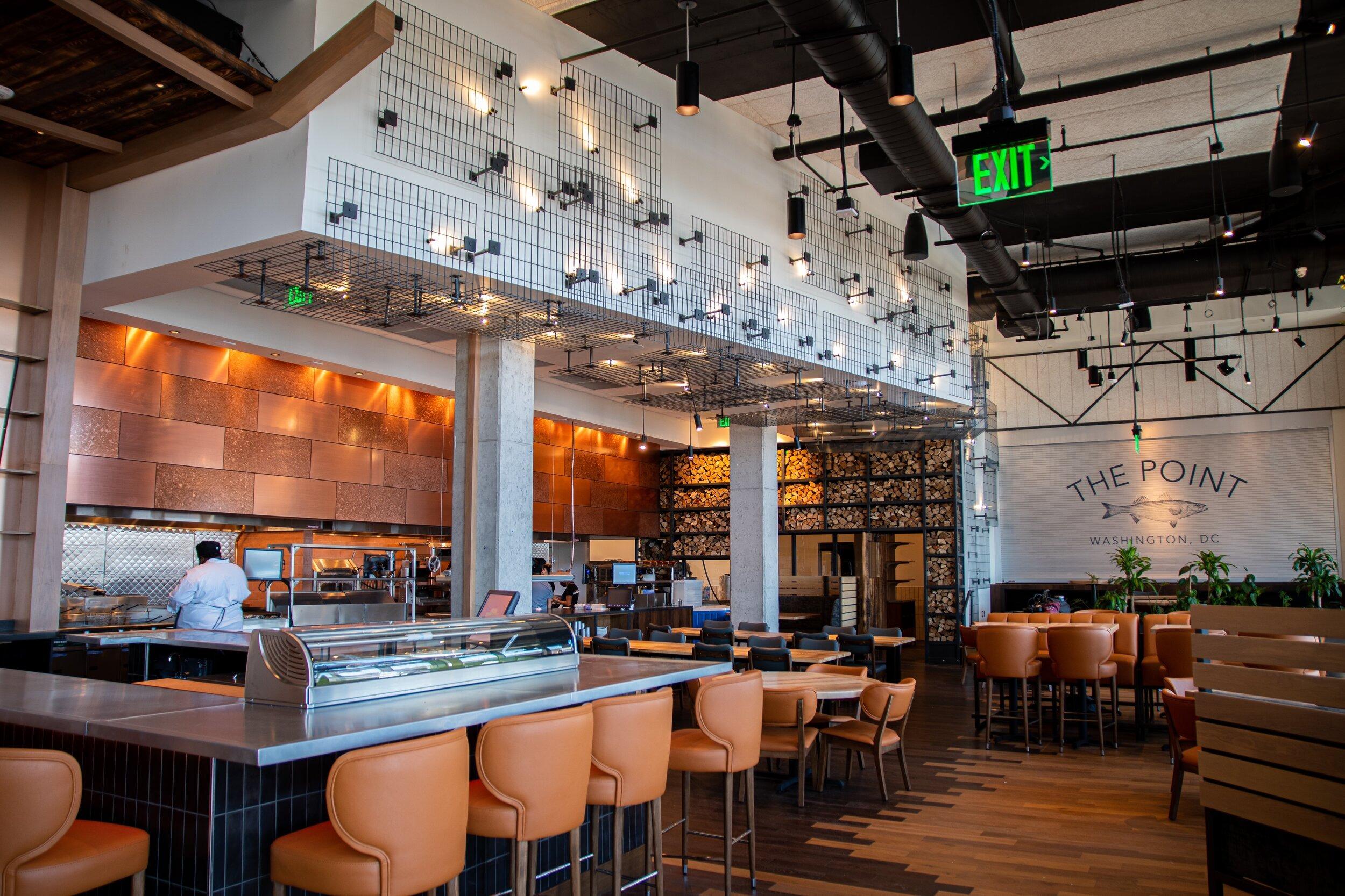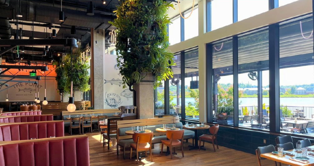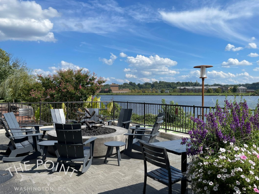 Perfectly situated at the confluence of the Potomac and Anacostia Rivers, the contemporary design with live green walls, tranquil open-air patio and fire pits, compliment the picturesque and panoramic views.