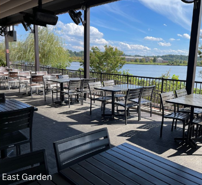 The Garden Patios are two lovely semi-private spaces that feature beautiful views of the river, fans and heaters, a retractable sunshade -- perfect for al fresco dining or small receptions! Our East Garden Patio (reception style up to 60 guests I seated up to 50 guests) has the most private feel and is located just outside of the Main Dining Room while our West Garden Patio (reception style up to 40 guests | seated up to 32 guests) is located just near our Outside Bar and Bonfire.