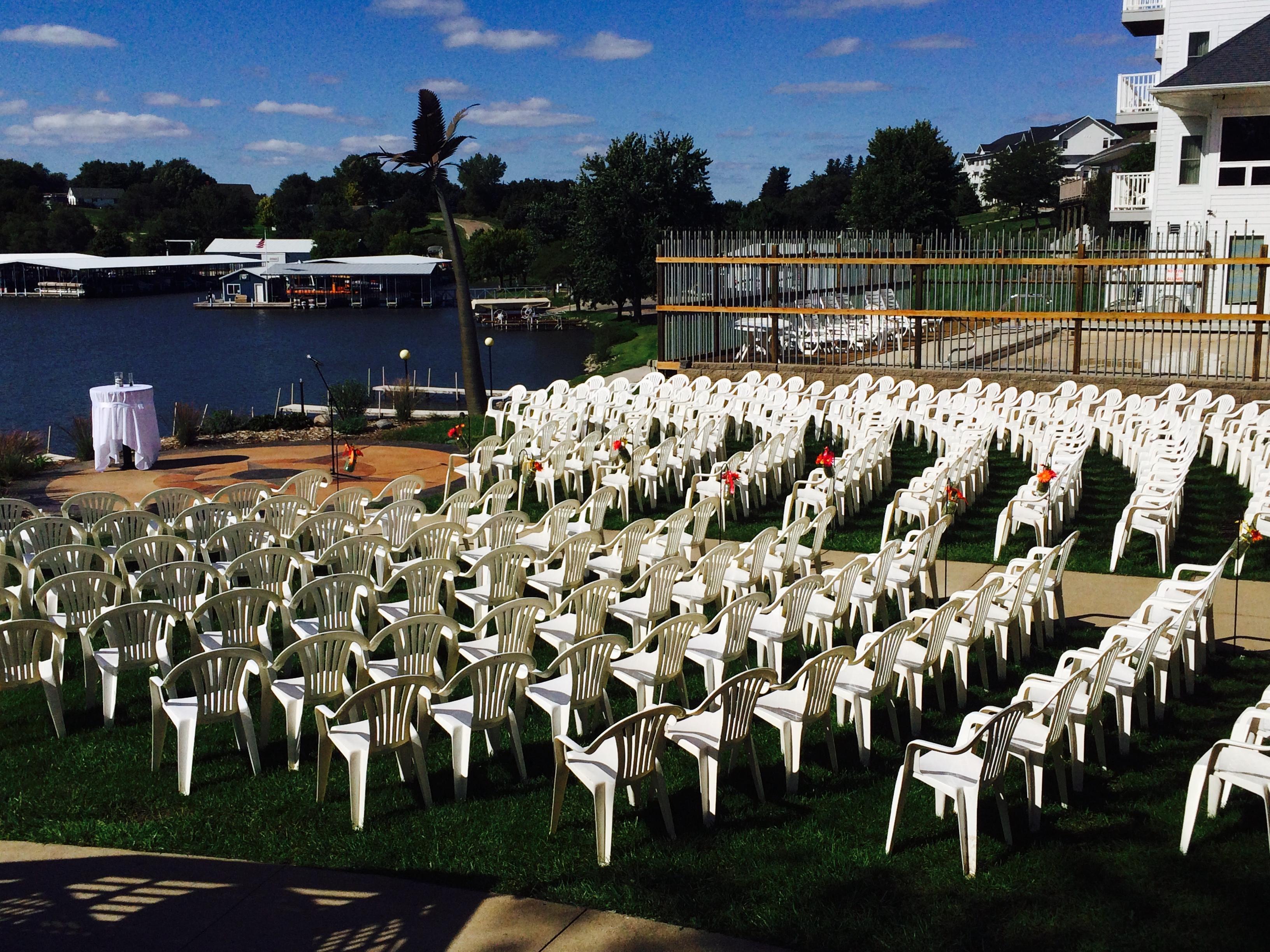 Beautiful lake front venue in small town Panora, Iowa. We do outdoor wedding ceremonies with the capability to move inside or rent an outdoor tent with notice. Buffet style menu that is diverse and customizable. Attached to a 22 room hotel with outdoor pool. Some wedding packages include hotel stays as well.