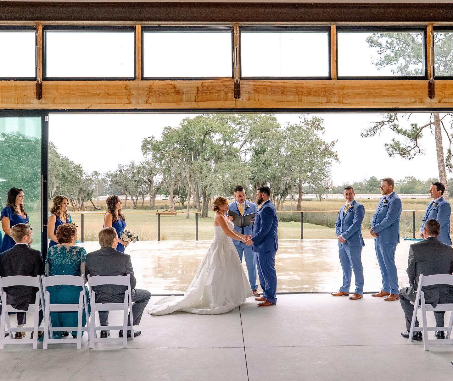 The Porter Room was the perfect venue for our wedding! From the start, their communication was mainly via email, which was convenient and responsive. The space itself is great - it's a large, moldable area that allowed us to truly customize it for our special day. The easy access for set up and clean up was a huge plus, and the bar staff were amazing - timely, professional, and attentive to our guests. The event coordinator was also incredibly organized, available, and informative throughout the planning process. The beautiful marshlands in the back, lined with gorgeous oak trees, provided a stunning backdrop, and the blank canvas of the Porter Room resulted in photos that our guests are still raving about. I highly recommend this location for any event, especially a wedding!