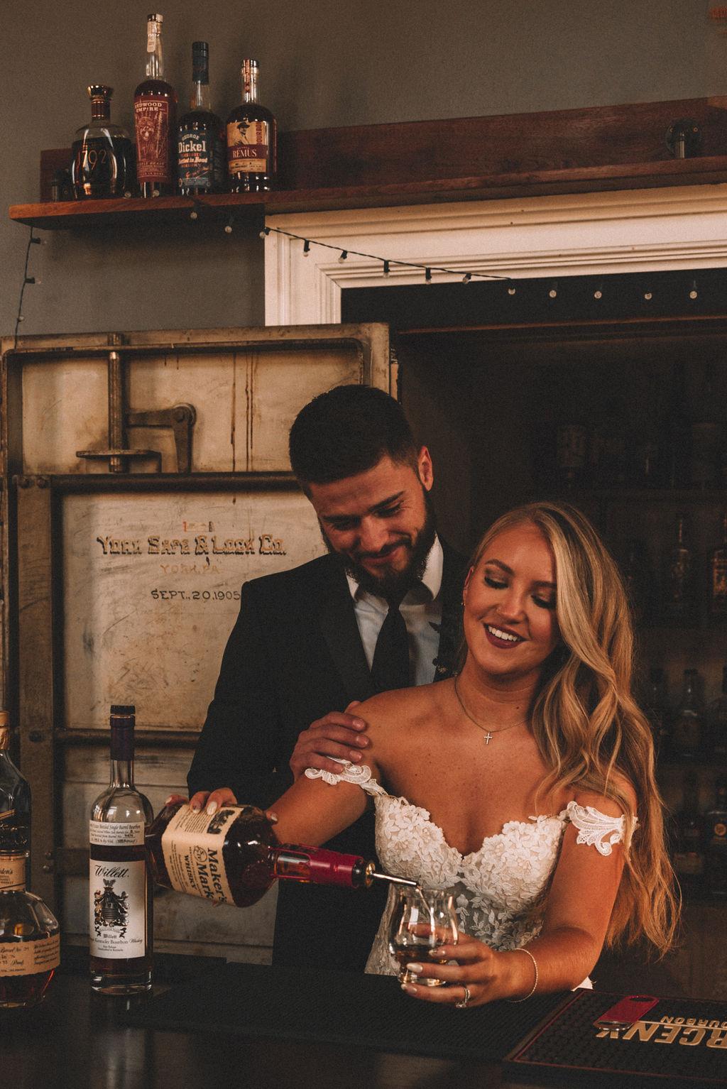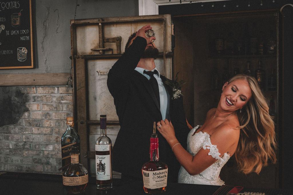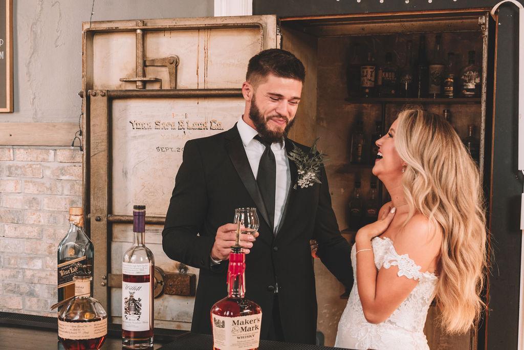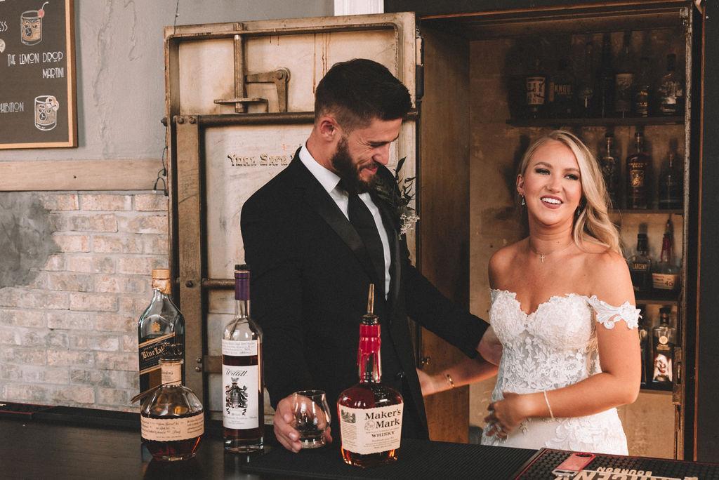 Take a step back into time with this amazing bourbon bar inside The Postmark! We present a speakeasy vibe that is included in rental of wedding venue.