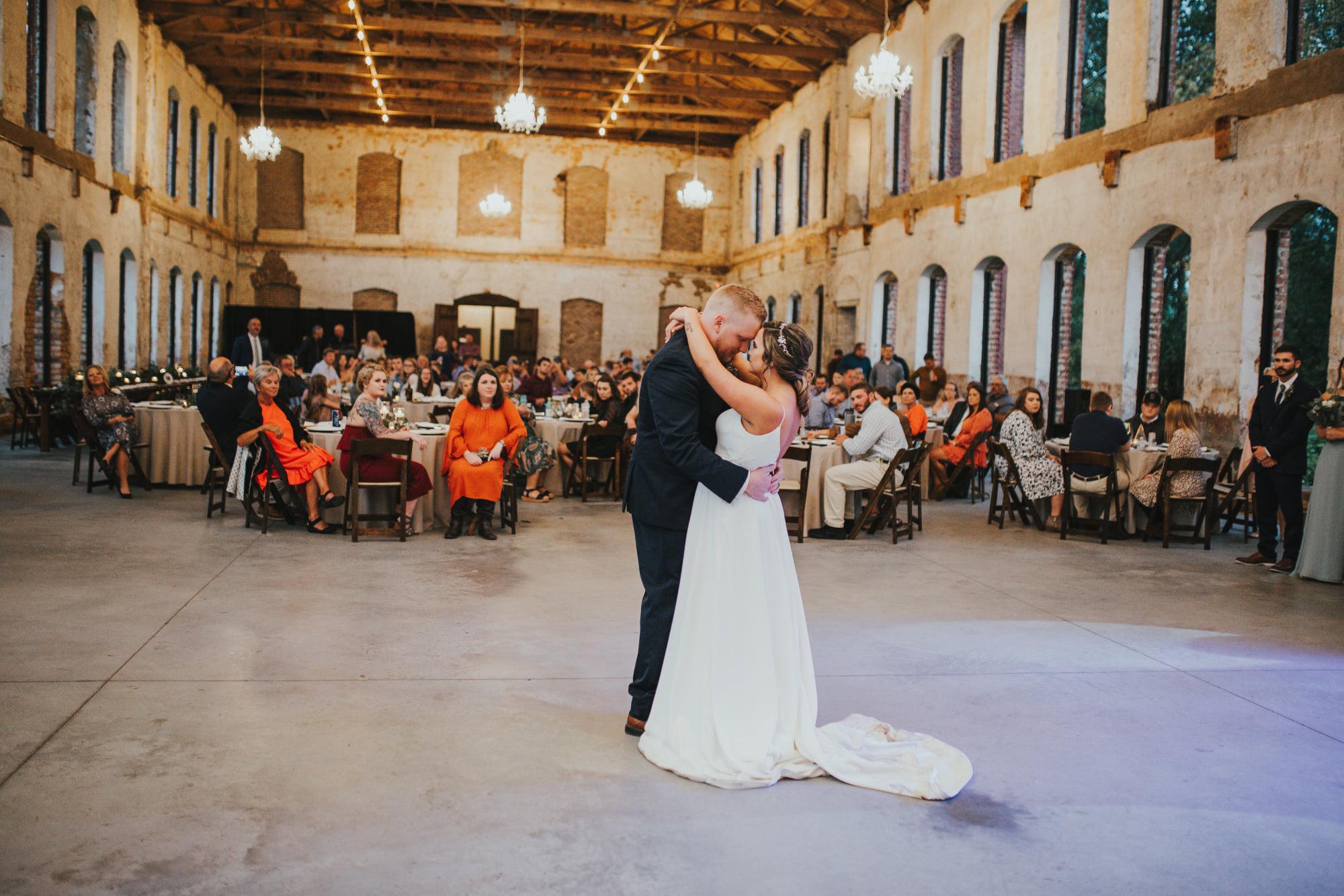 The Providence Cotton Mill is for those that desire something different and unique for their special day. With its timeless 1888 solid brick construction, arched window openings, soaring 30 ft. tall wooden, exposed beams, and distressed plaster walls, we provide the perfect setting that is unrivaled in beauty, character, and warmth. With several locations on the property, indoors and out, your wedding can be set up in a way that is uniquely you. Over 700 guests can be seated at tables inside for a reception. The grassy lawn is limitless.