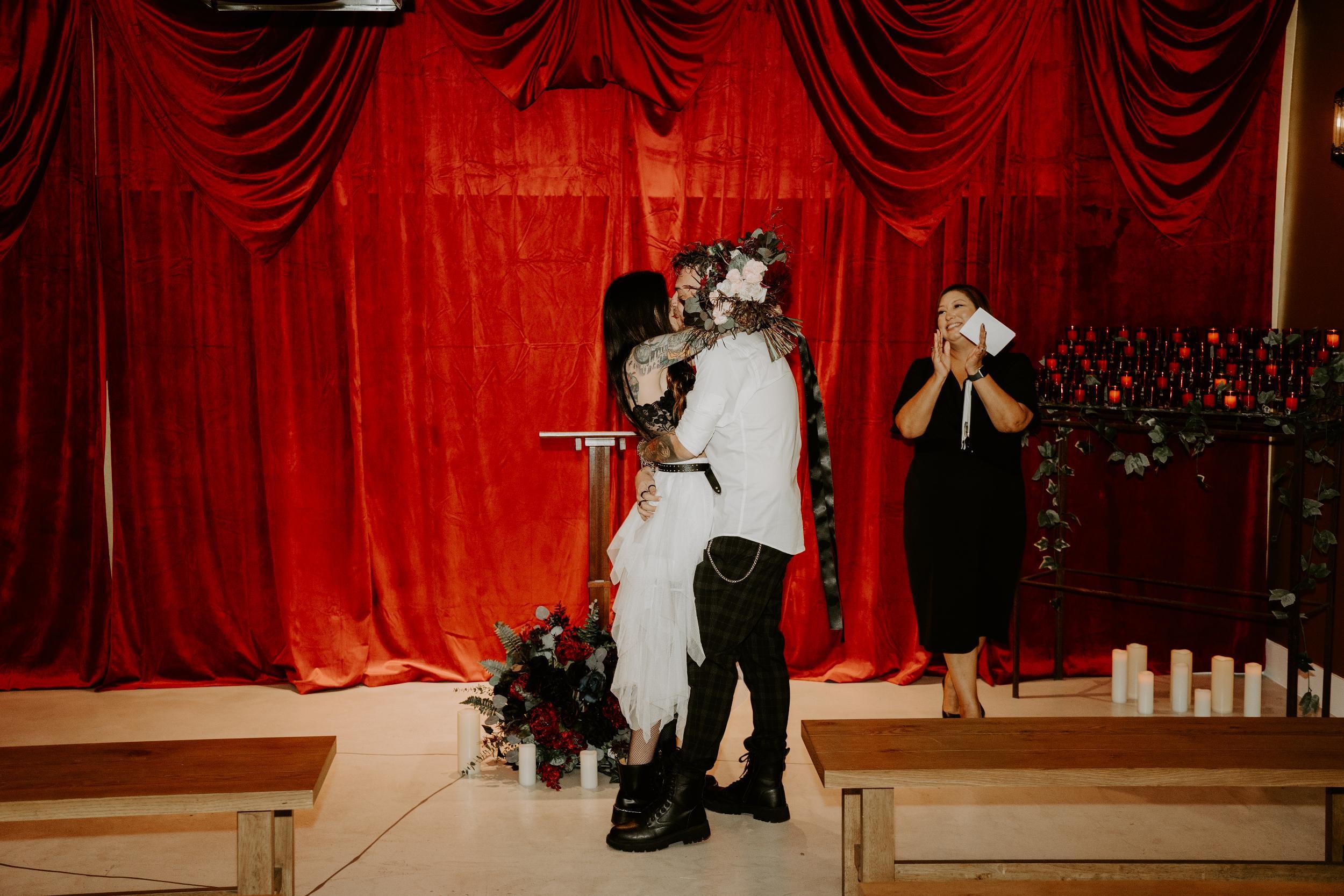 Partners in Crime - a quick, no-frills elopement. Bring an officiant, a photographer, four friends, and a legal marriage certificate, to have a “pop-up style” wedding ceremony. Photography is only allowed inside The Chapel, Triple Down Bar, and the Living Room. NOTE: Partners in Crime package does not include an officiant, marriage license filing, or a photographer. Ceremonies are booked during TPRM business hours, and there is a possibility of party crashers.