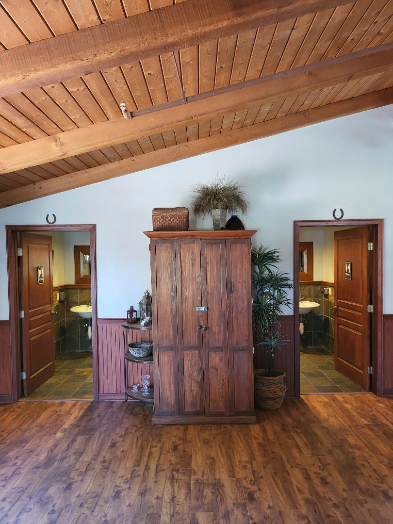 When you book the Red Horse Barn we permit access to the Grooms Room up to three hours pre ceremony. The area offers a covered porch with views of Equestrian Center arenas. Sit back, enjoy some snacks and a couple pre event cocktails.
