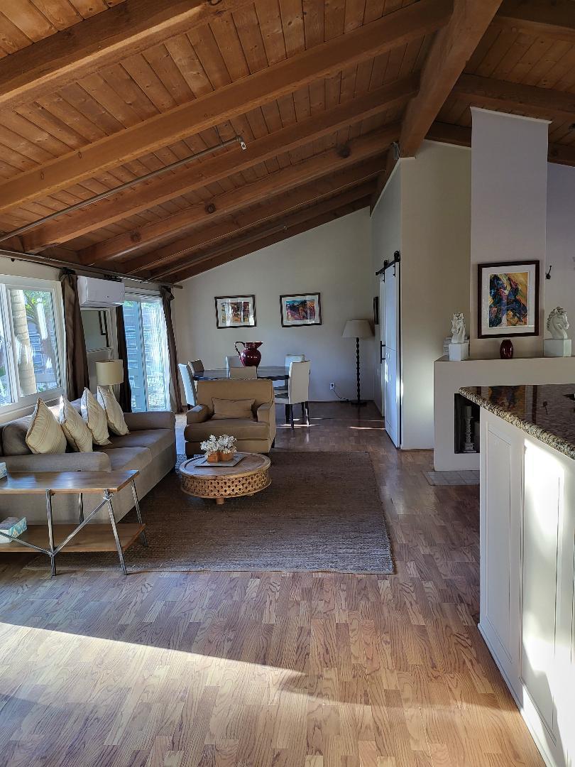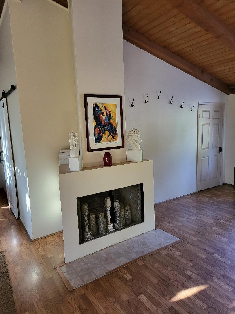 Rustic and masculine in decor with an equestrain vibe, Floor Covering: Hardwood floors, 2 Restrooms, full length mirror, garment rack, lounging and dining area. Large covered porch with views of horse arenas..