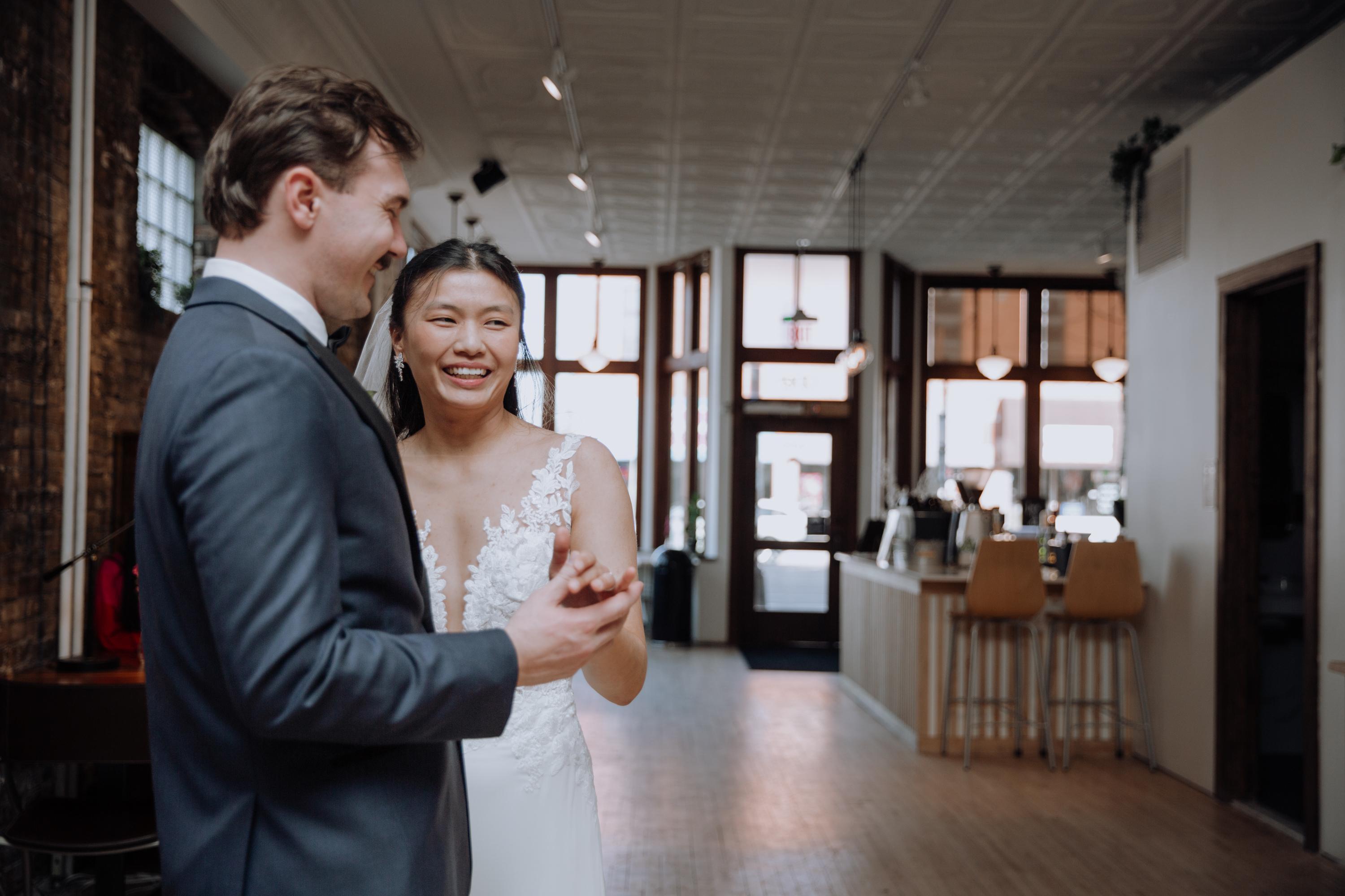 The Revel Room is a local coffee shop venue in NE Minneapolis featuring exposed brick walls, wooden floors, and natural plants. It blends historical charm with a cozy stylish ambiance, perfect for petite events. Couples are frequently attracted to our open catering policy, the ability to manage our in-house sound system, our elegant and effortless decor packages, and the venue coordinator included in the package - we are designed in you in mind!