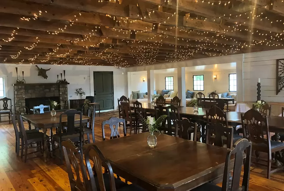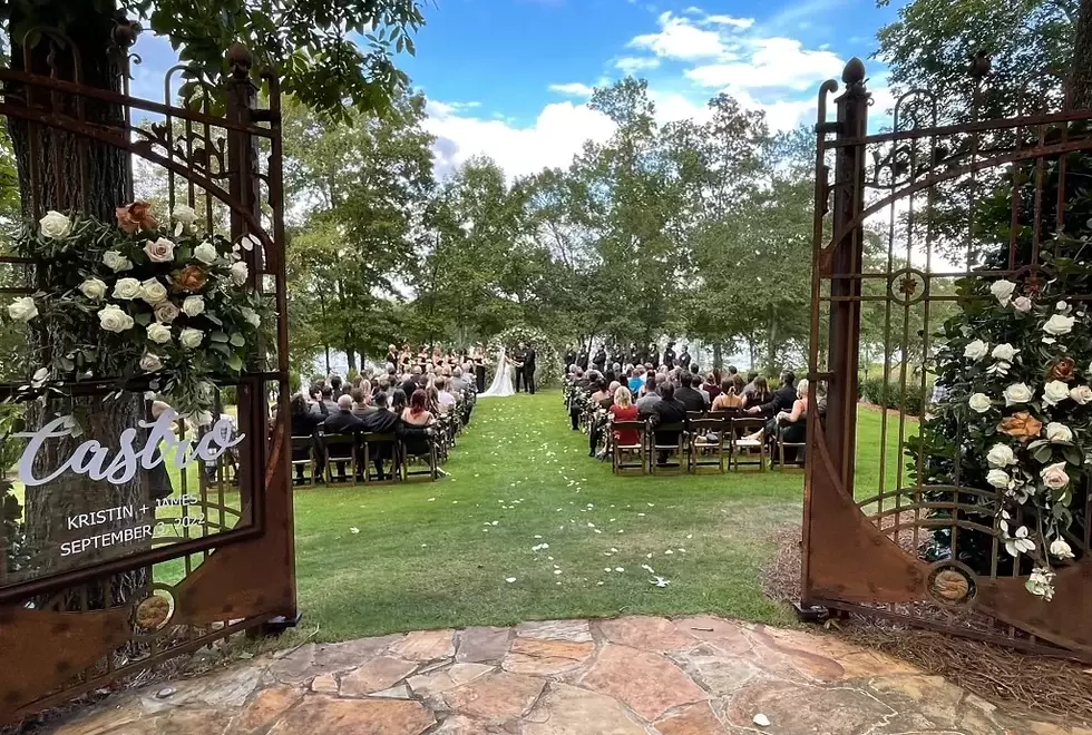 • The Gates: Our picturesque ceremony site offers breathtaking river views and a romantic setting for your special day. Accommodates up to 250 guests. • The Grand Lawn: This versatile space is perfect for any type of event, from weddings to corporate gatherings. Enjoy a blank canvas of lush green lawn with ample space for customization. Accommodates up to 250 guests. • The Lower Patio: Create a relaxing atmosphere for your guests with this adjacent patio, ideal for champagne service or additional seating. • Careless Joe's: Step back in time at this historic venue, once a bustling dance hall. Enjoy the charming ambiance and cozy seating for up to 75 guests. • The Overlook: Take in the stunning river views from our outdoor space, complete with a fire pit and cafe lights. Accommodates up to 75 guests.