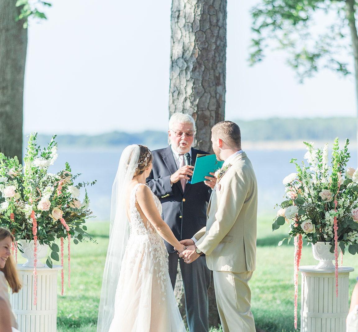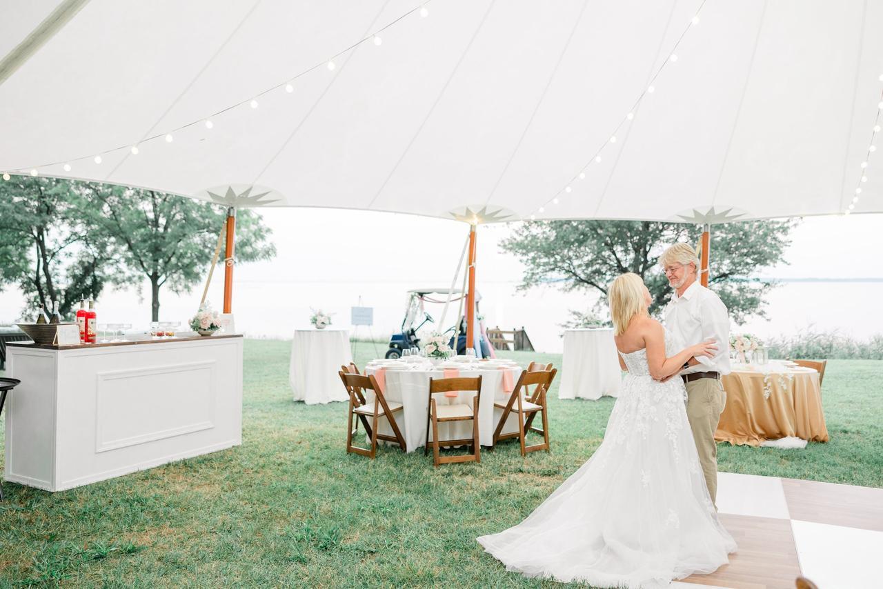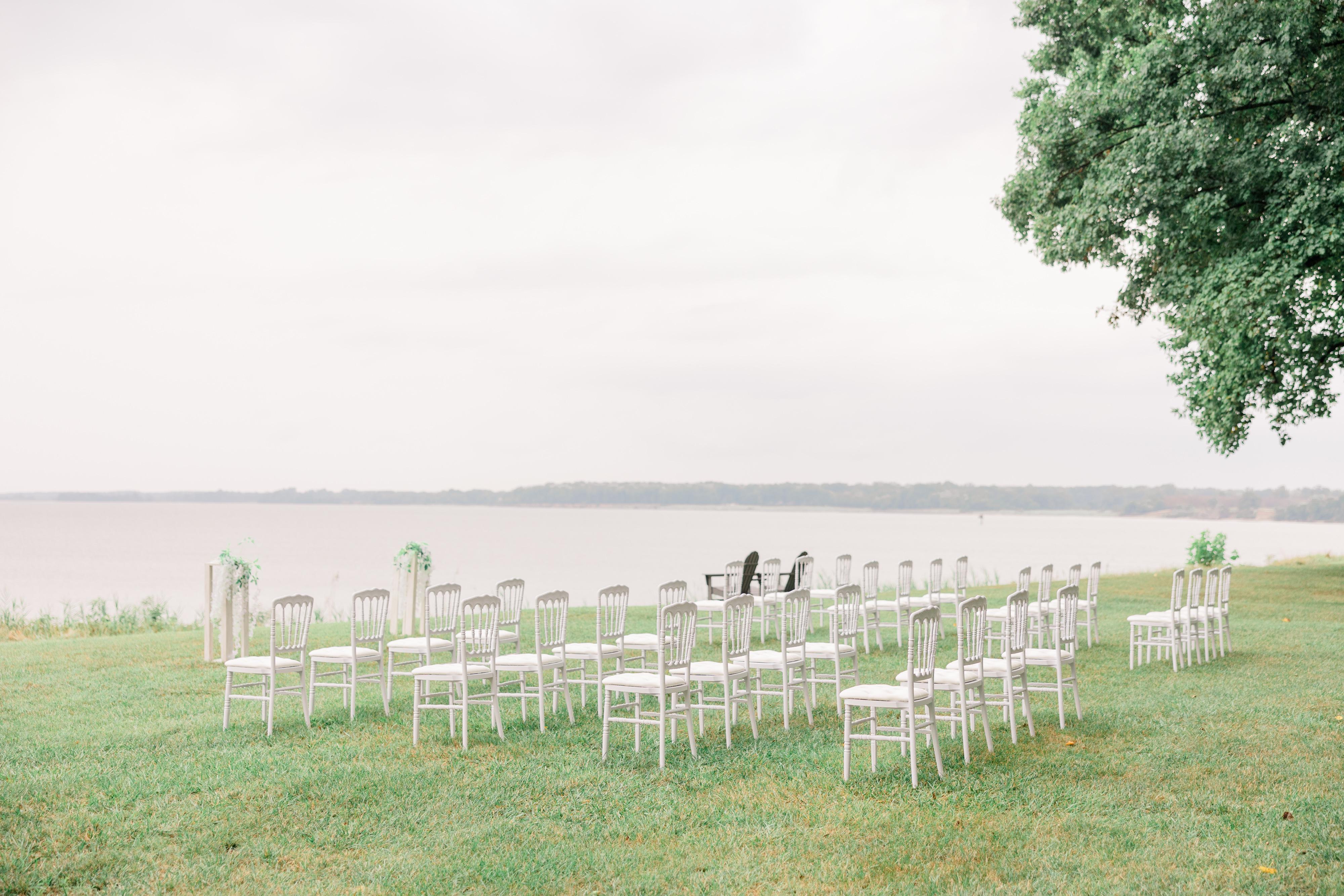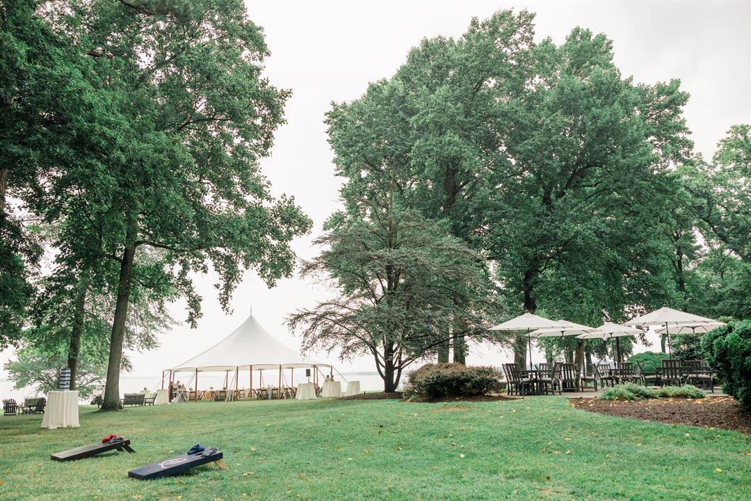 Your wedding package includes an outdoor tent setup with enough space to host the ceremony and reception overlooking the Chester River.