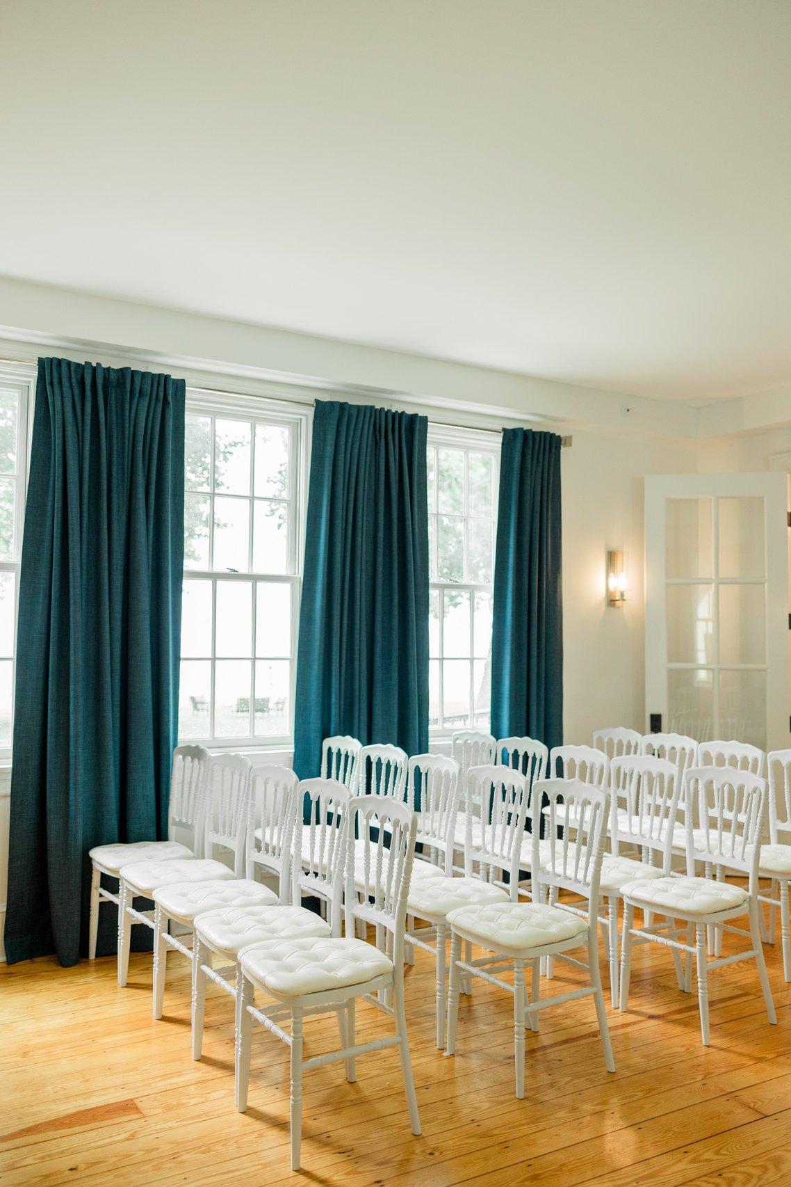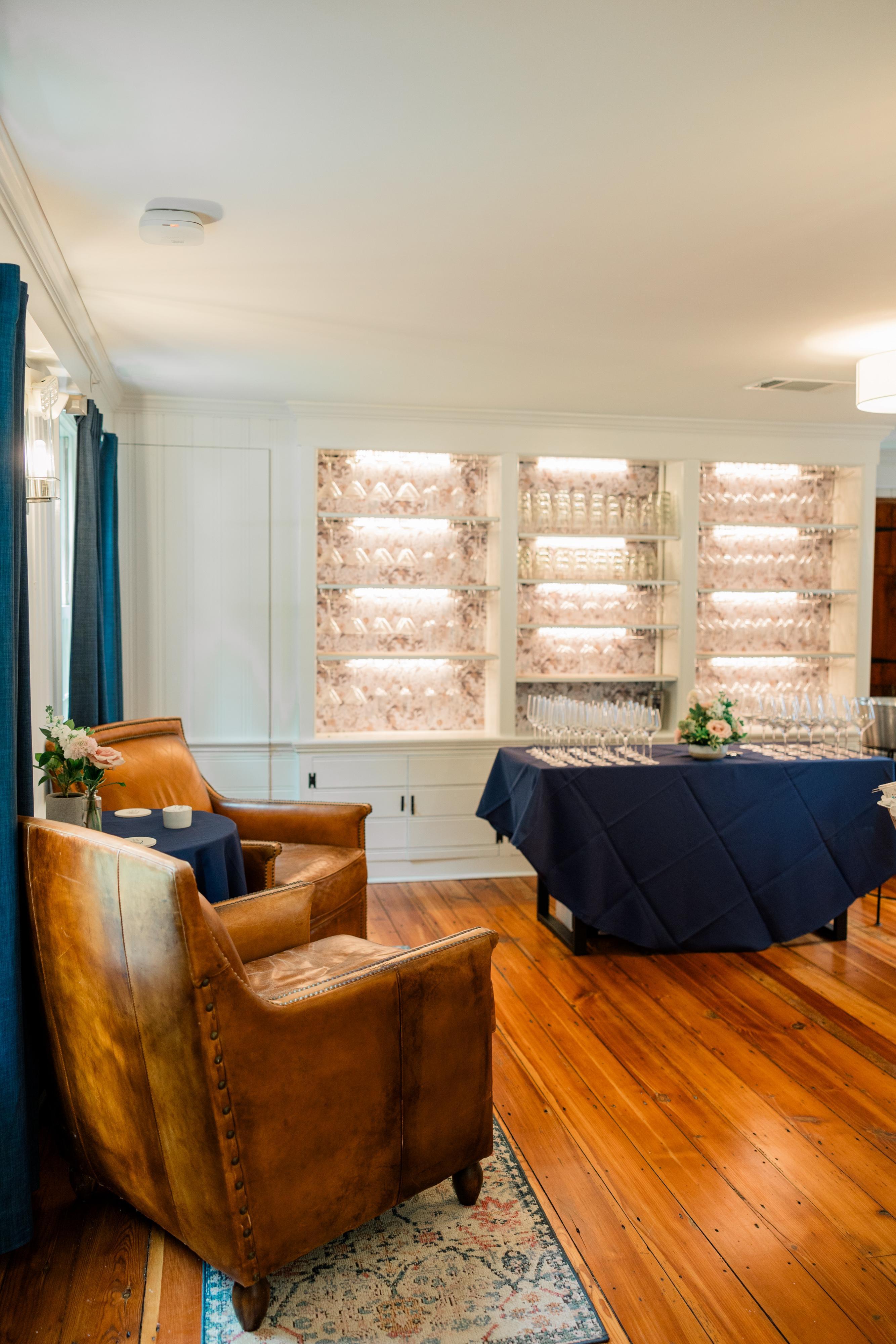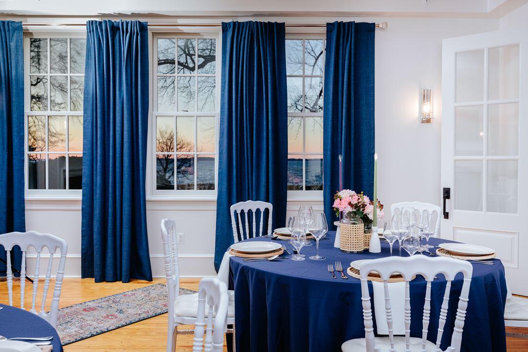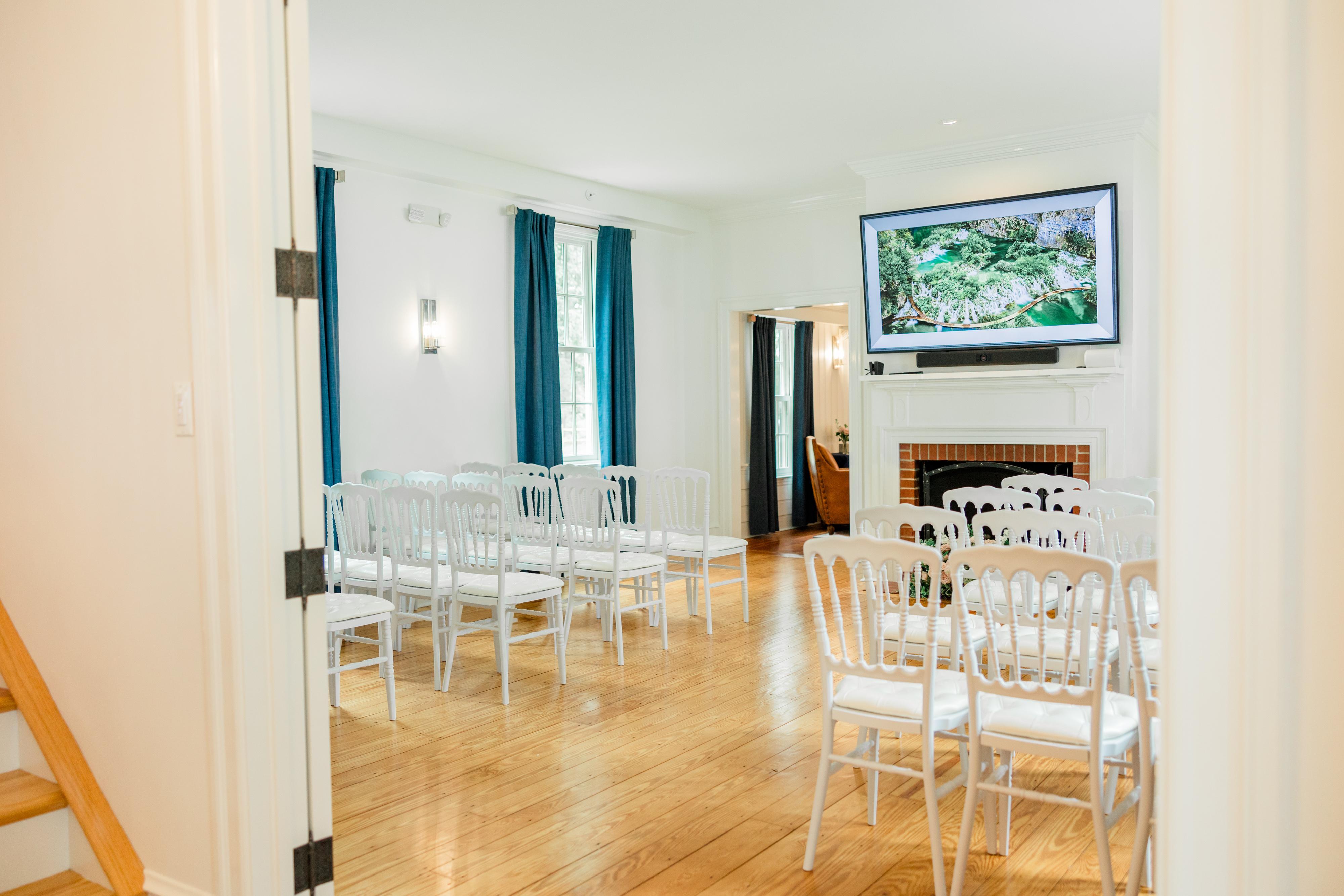 The River House features 2 formal gathering rooms, a library and a sunroom, with an expansive patio and lawn overlooking the Chester River on Maryland's Eastern Shore. Enjoy an intimate gathering of up to 65 inside The River House with our cozy gas fireplaces and historic features.