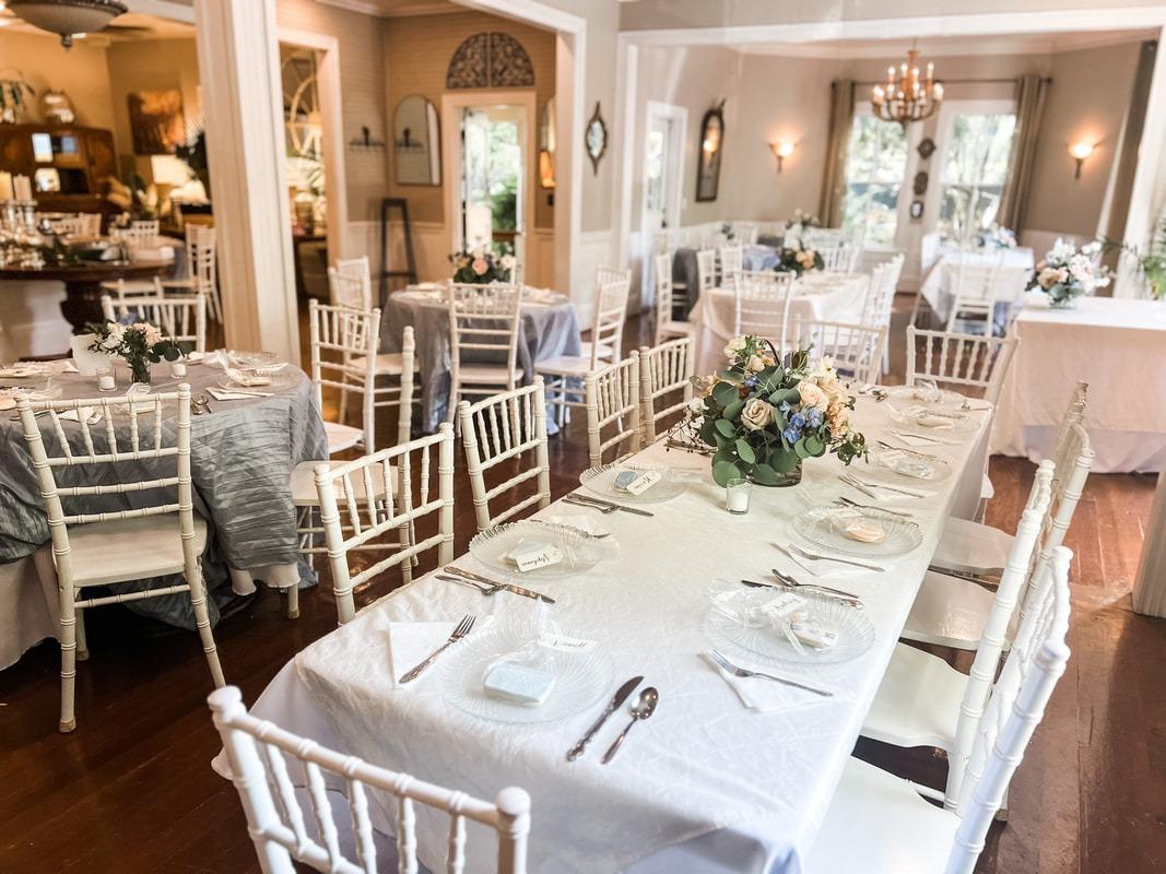 Built at the turn of the 20th century, the River Road House and the Jasmine House are two separate spaces within one venue that have been restored with all the amenities of today, while maintaining the southern charm and architectural splendor of the early 1900's. Our family owned and operated venue offers professional and personalized attention from the very beginning stages of planning, until the last guest departs. Our level of commitment and dedication from our experienced staff is what sets us apart from other event venues, in addition to our almost 30 years of being in business. We hope that you will allow the River Road and Jasmine Houses to provide a location that you and your guests will remember for years to come! *We can hold up to 100 guests for a fully seated reception, and up to 200 guests for a heavy hors d'oeuvres style reception.