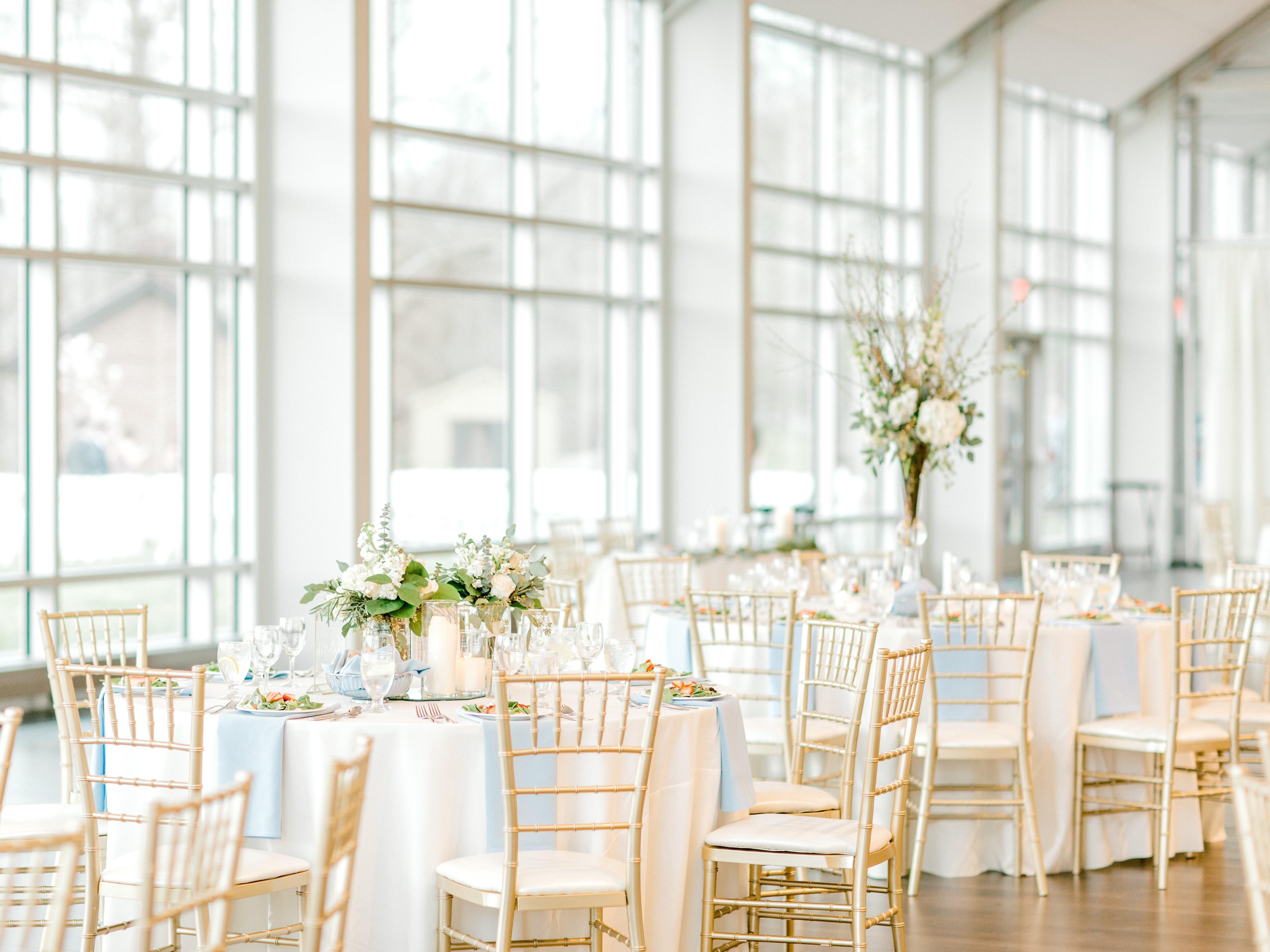 -hardwood floors -floor-to-ceiling windows with electronic shades -gold chiavari chairs -round & rectangle tables