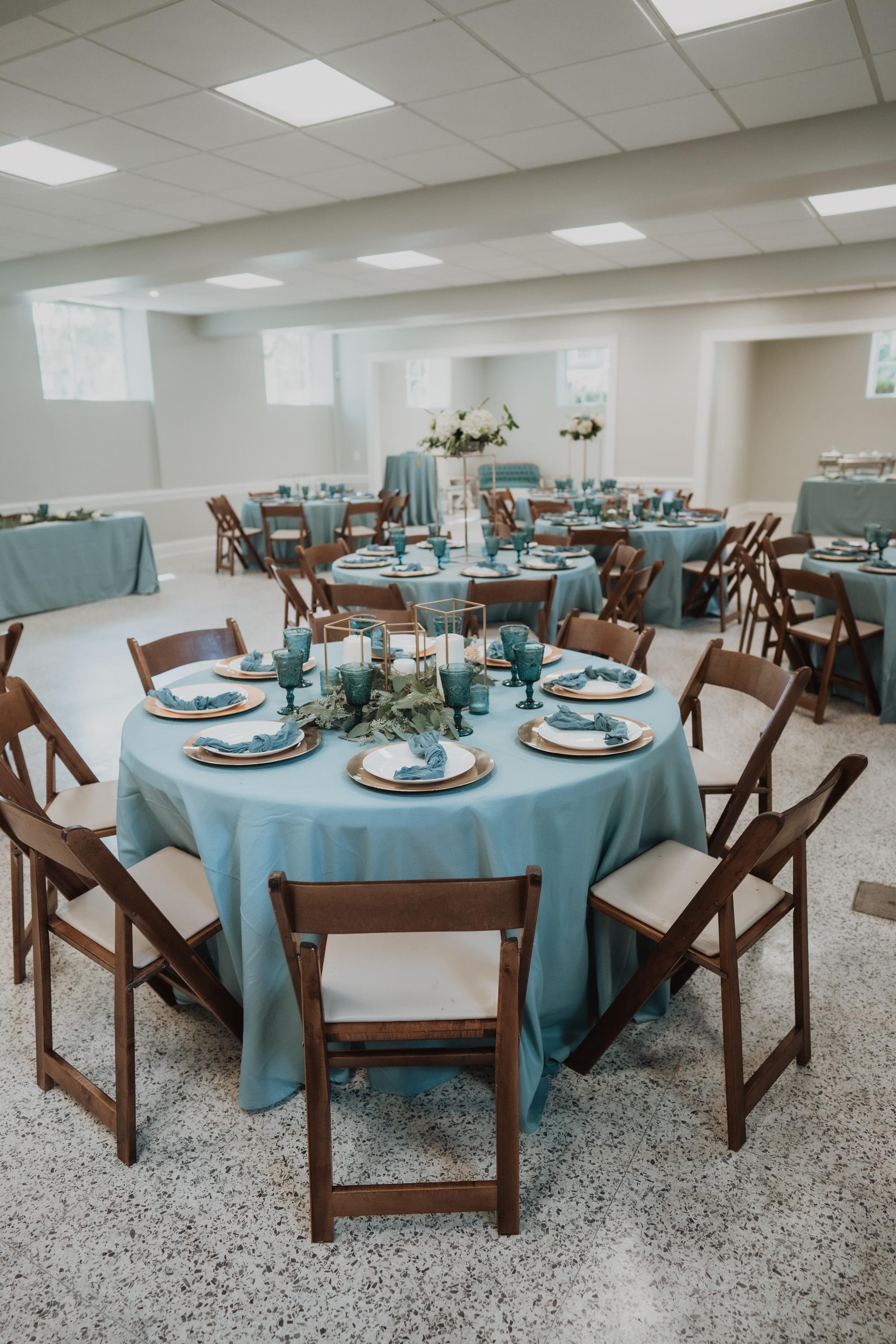 Dimmers for total lighting customization. Available for use with rental: 18 60" round tables and 125 standard padded banquet chairs. Banquet chairs are standard size and a standard chair cover will fit them.