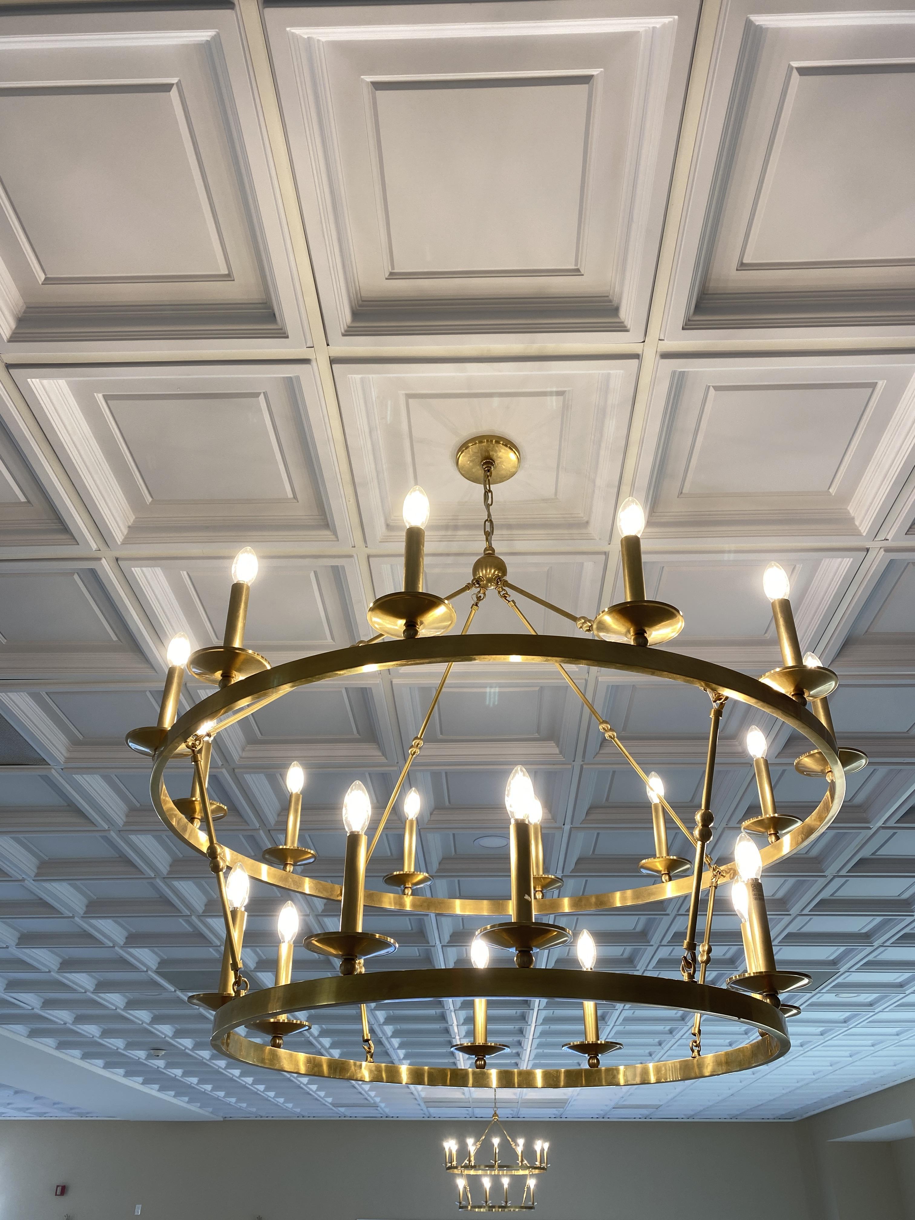 Sconces and chandeliers on dimmers, Gold Chiavari chairs, On Site Event Coordinator