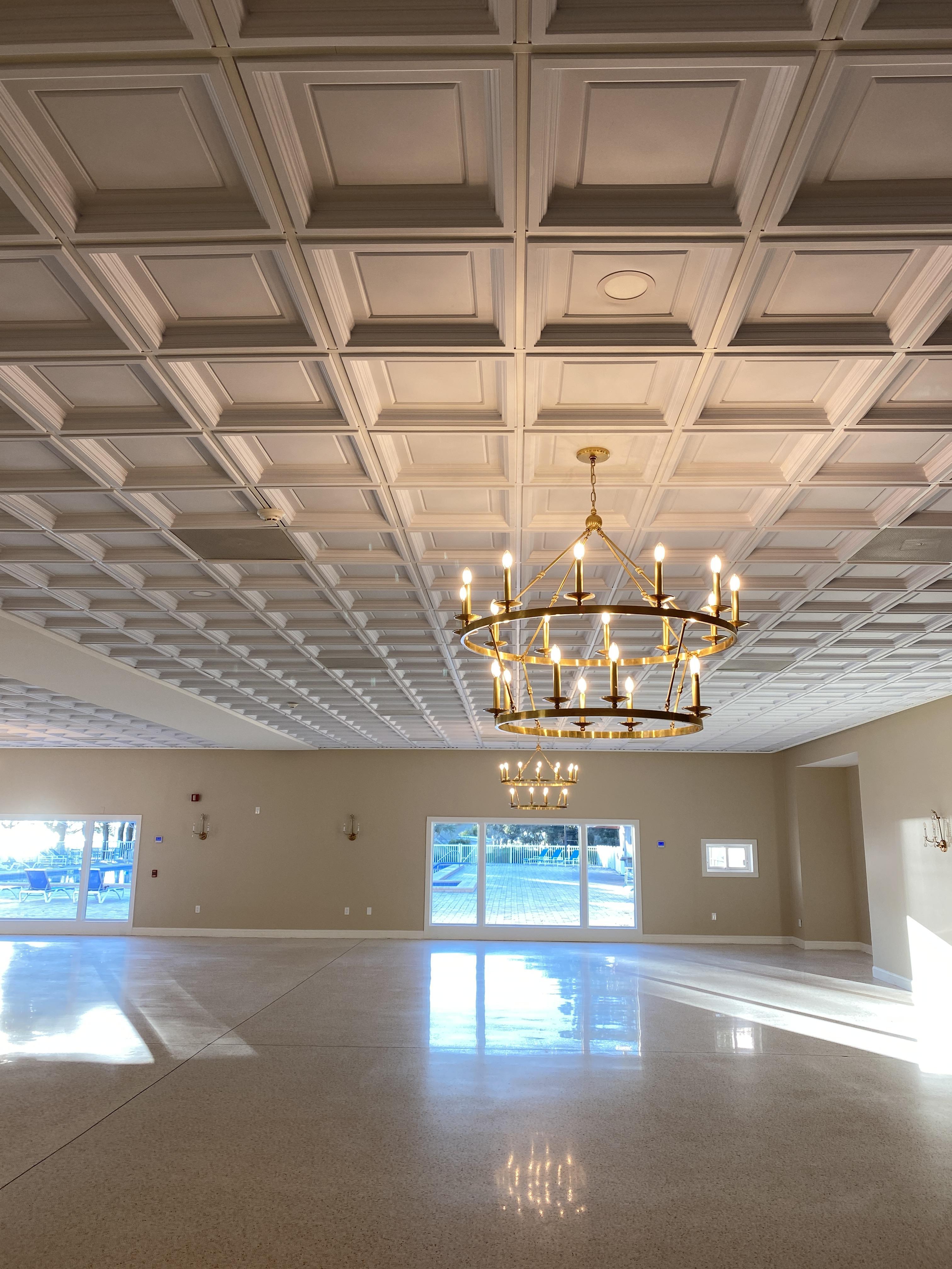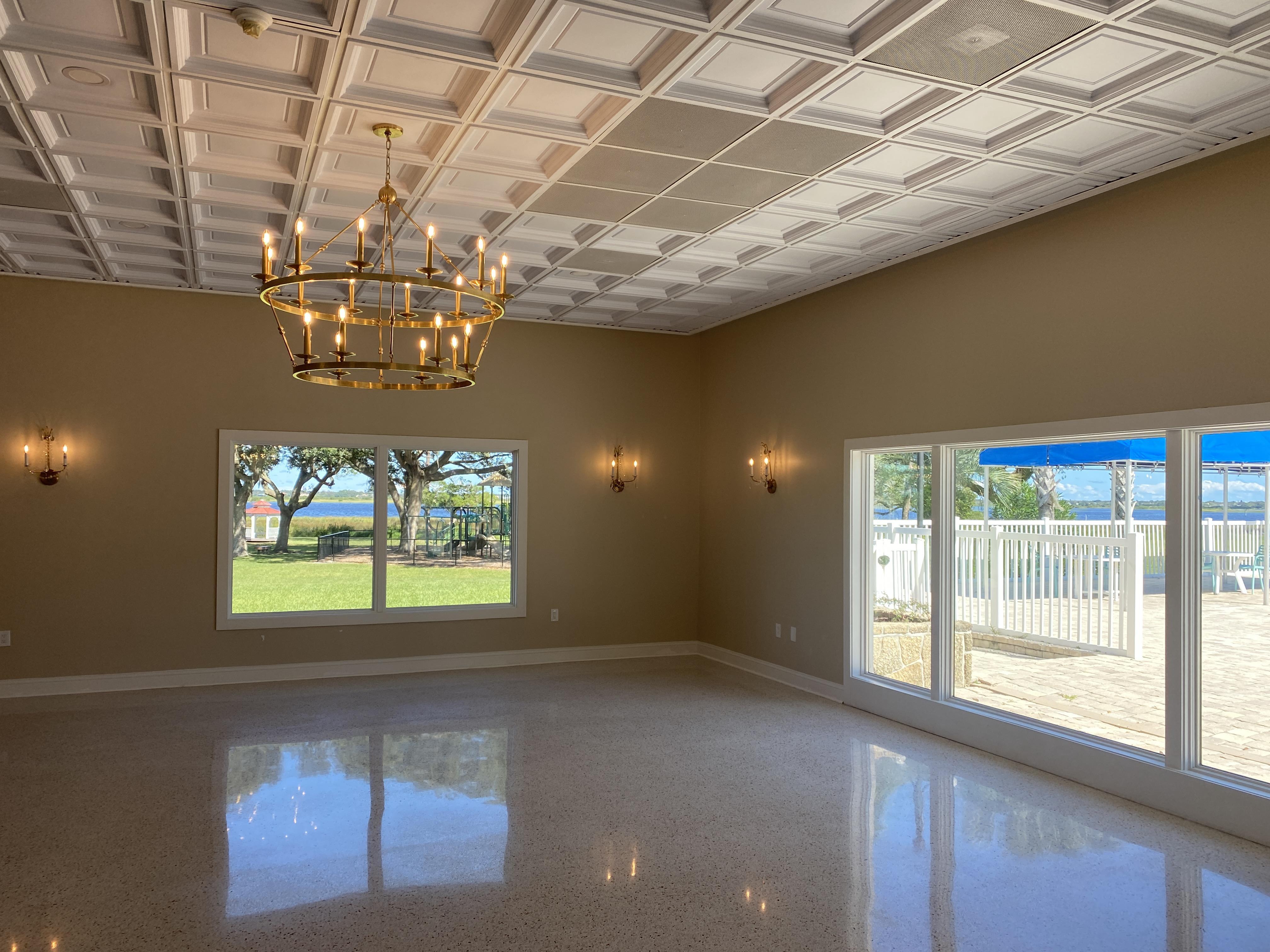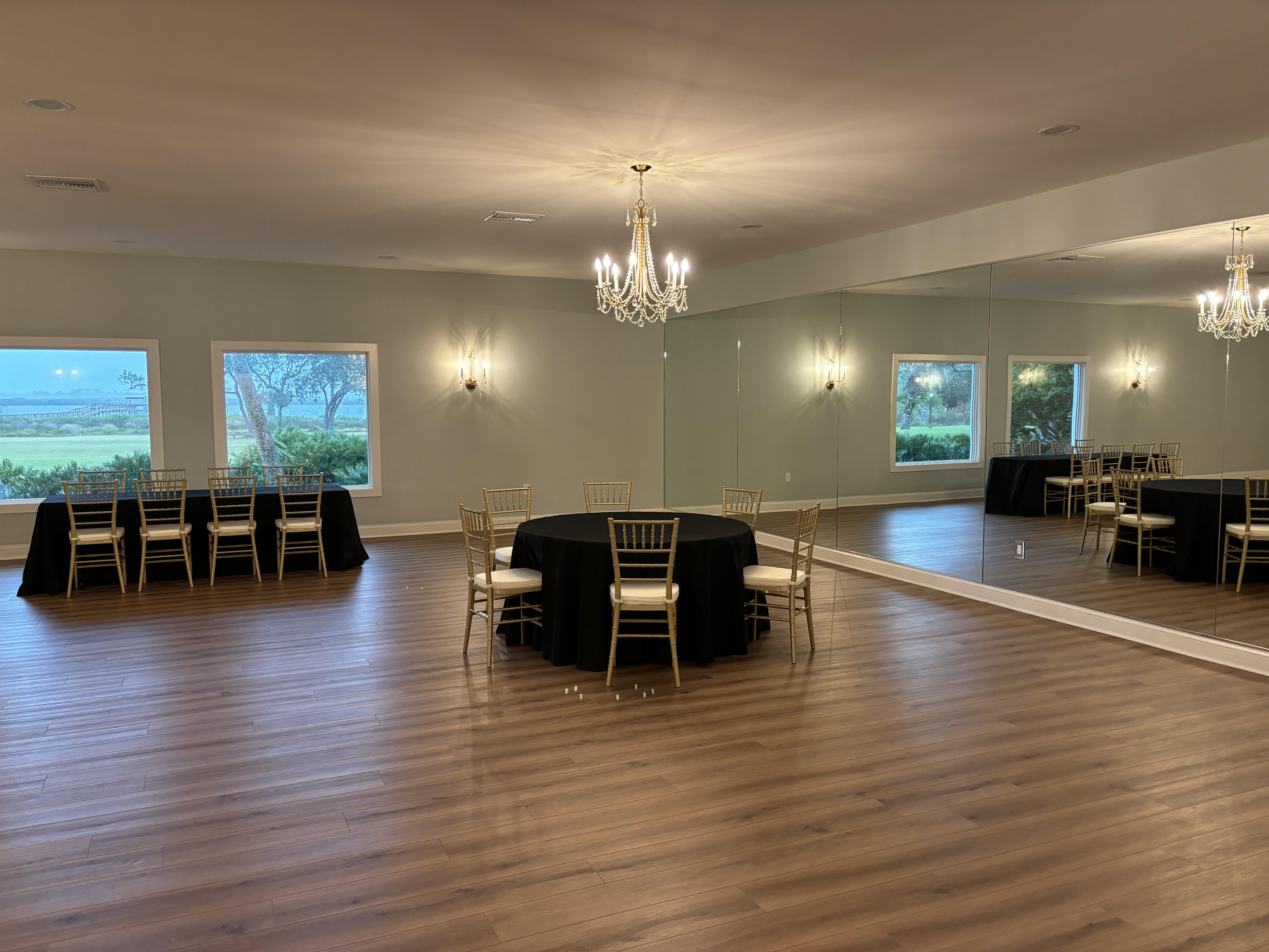 This space features gorgeous views of the Intracoastal Waterway, the pier, and the grounds surrounding the building. Sconces and Chandeliers that are dimmable create an elegant and cozy room for your event