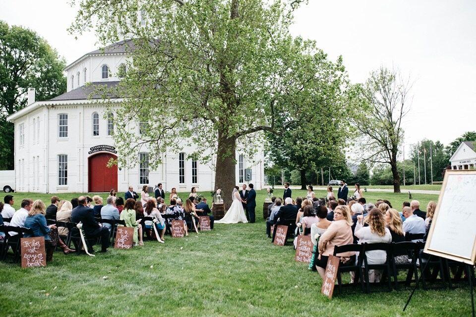 Bringing your wedding day vision to life should be exciting, not overwhelming! Nestled next to the historic Red Mile Racetrack, Lexington's beloved Round Barn offers a one-of-a-kind setting filled with charm and elegance. Originally built in 1882, this beautifully restored landmark now serves as a stunning event space and a historical museum. The venue's white draping and warm bistro lighting set the scene for an unforgettable celebration. And let's talk about the centerpiece-an exquisite four-tier chandelier that creates the perfect backdrop for your first dance. Our dedicated Event Managers will help with the details, ensuring a seamless experience from start to finish. Plus, with Bayou Bluegrass Catering's in-house food and beverage service, you'll have a variety of delicious menu options tailored to your taste. Ready to make your dream wedding a reality? Let's chat and start planning today!