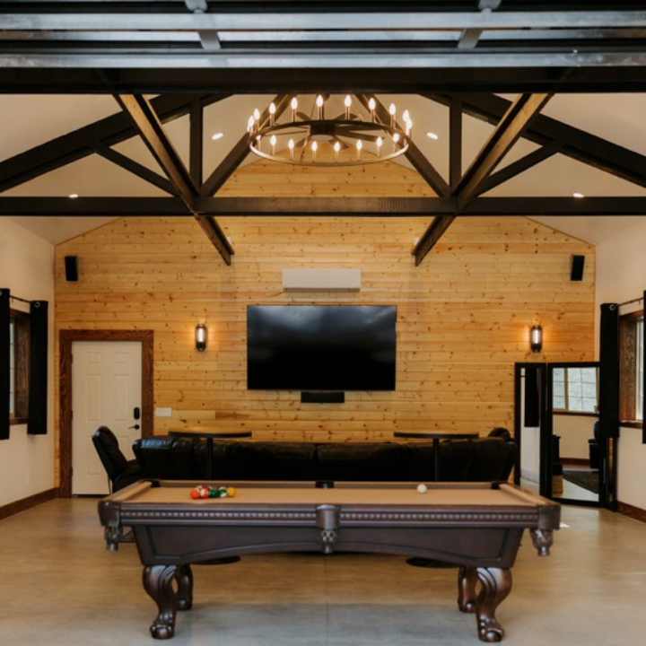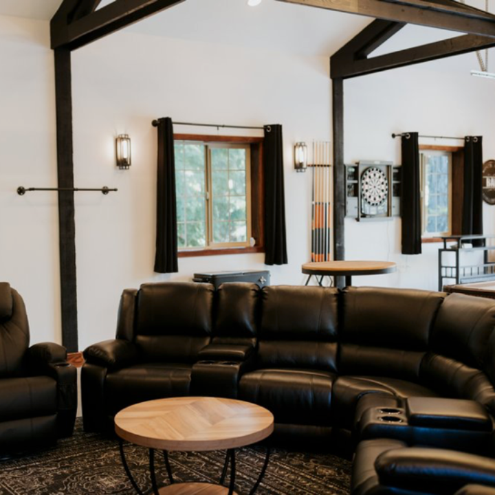 While the ladies prepare in style, the guys will be entertained in their own 24x36 “Bro barn” including couches, large screen TV, pool table, darts, shuffleboard and your own private bar area.