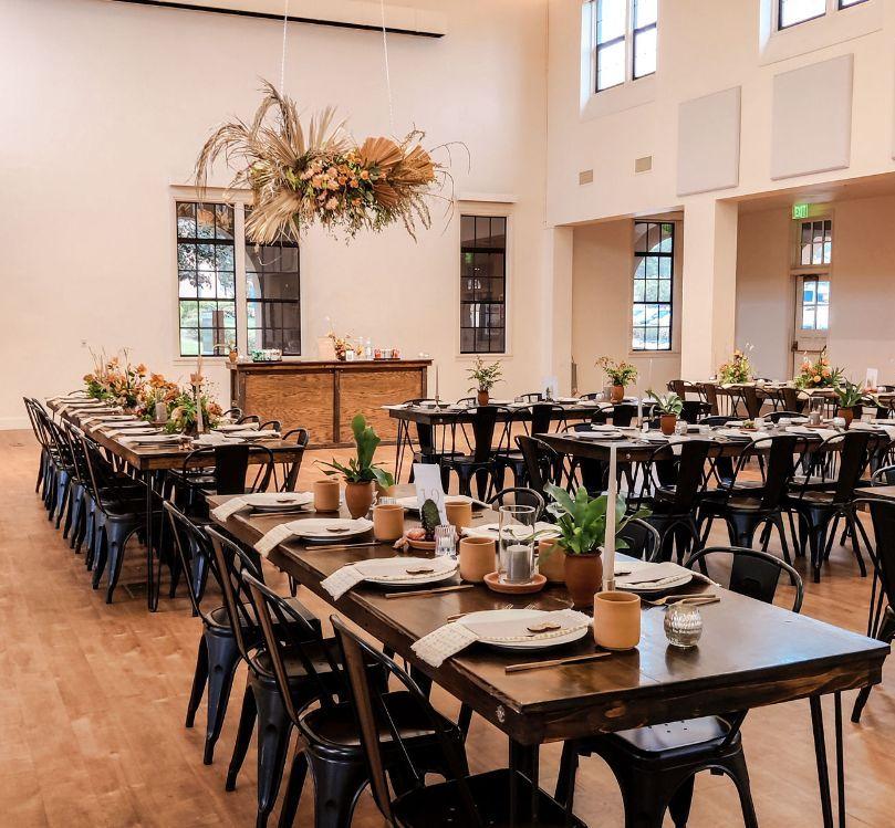 The Sinclair Starter Our starter package to cover basic event furniture needs. -10 Hickory Farm Tables -1 Sweetheart Table -100 Fruitwood Chairs -Delivery + Service Charge