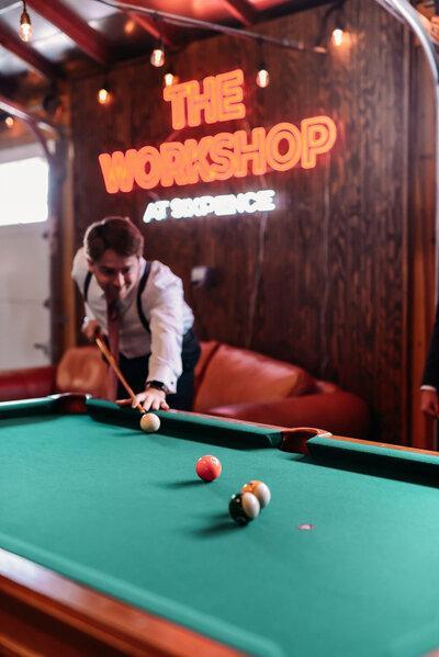 Workshop at The Sixpence - A renovated garage hangout space, perfect for the groom's party or family to hang out on wedding day.