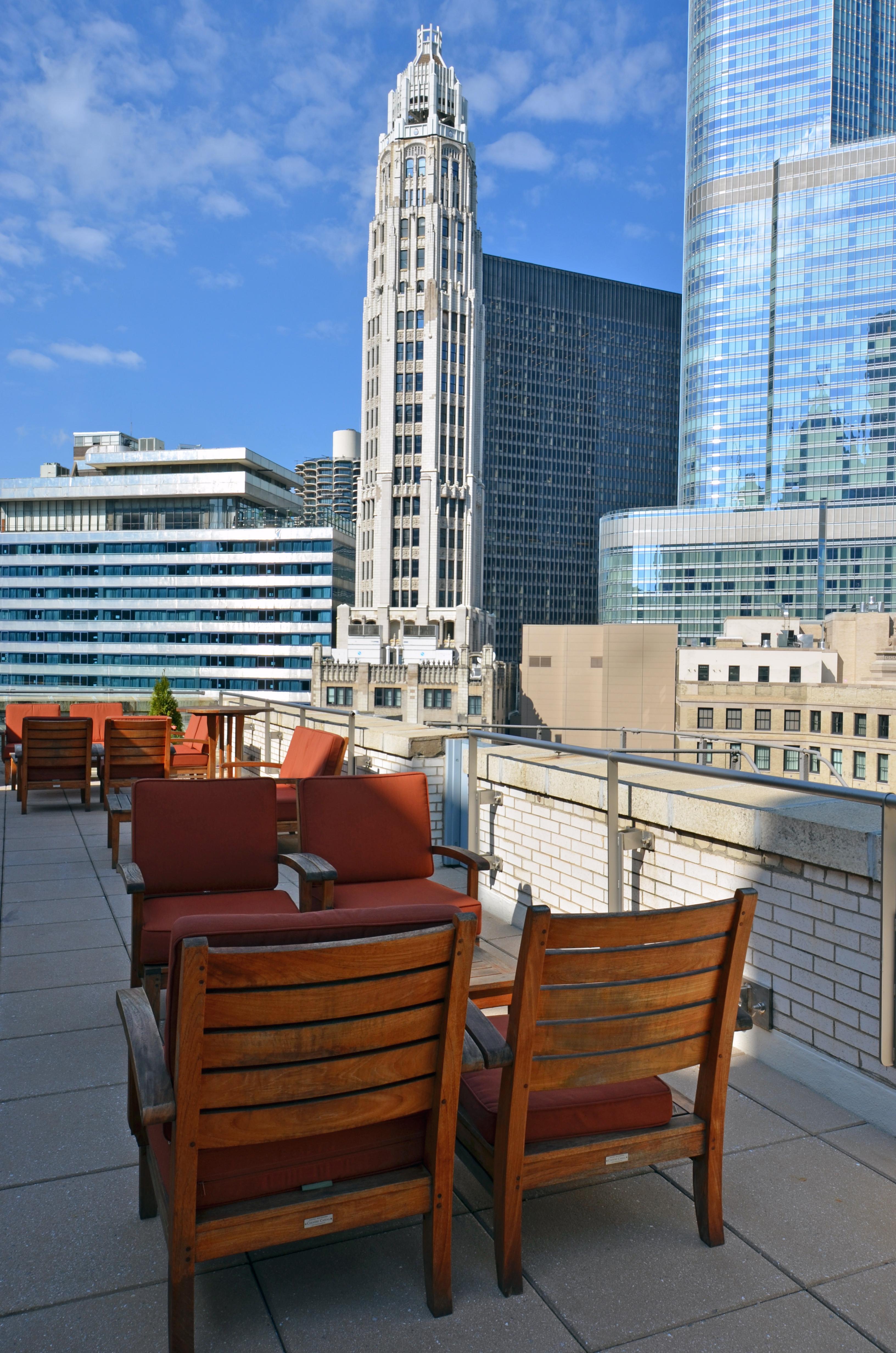 -Dimmers for lighting customization -Dinning table and chairs for up to 12 guests -Access to outside terrace overlooking Chicago skyline -Audio/Visual capabilities -Bar and Kitchen service