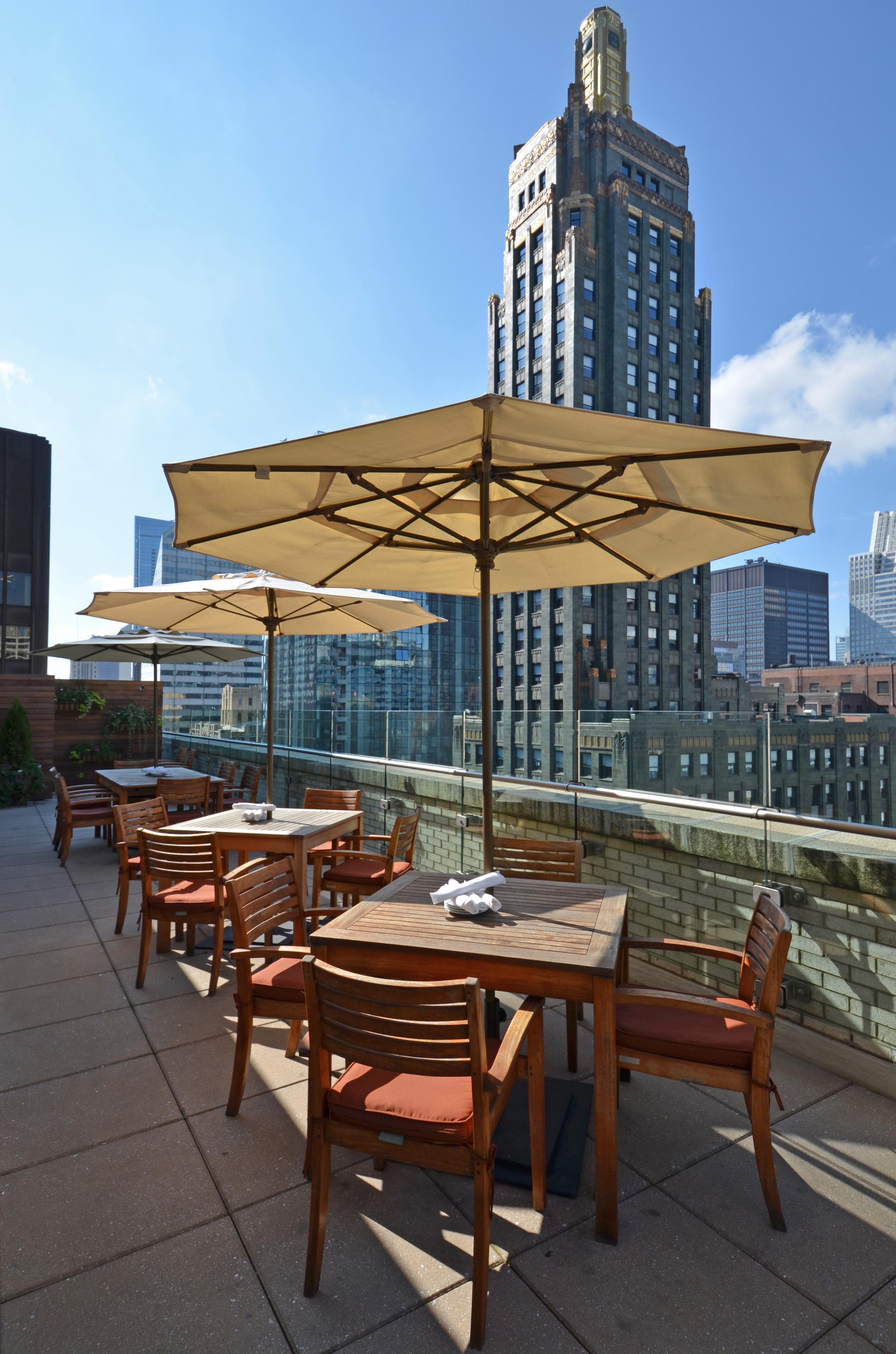 The terrace wraps around the north west side of the building, and is furnished with patio tables and lounge seating. The terrace can accommodate an open-bar, and any additional entertainment from our recommended vendors.