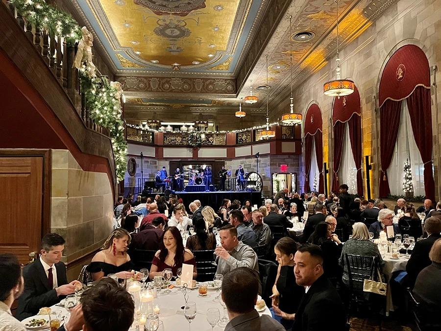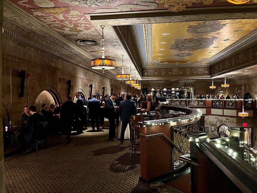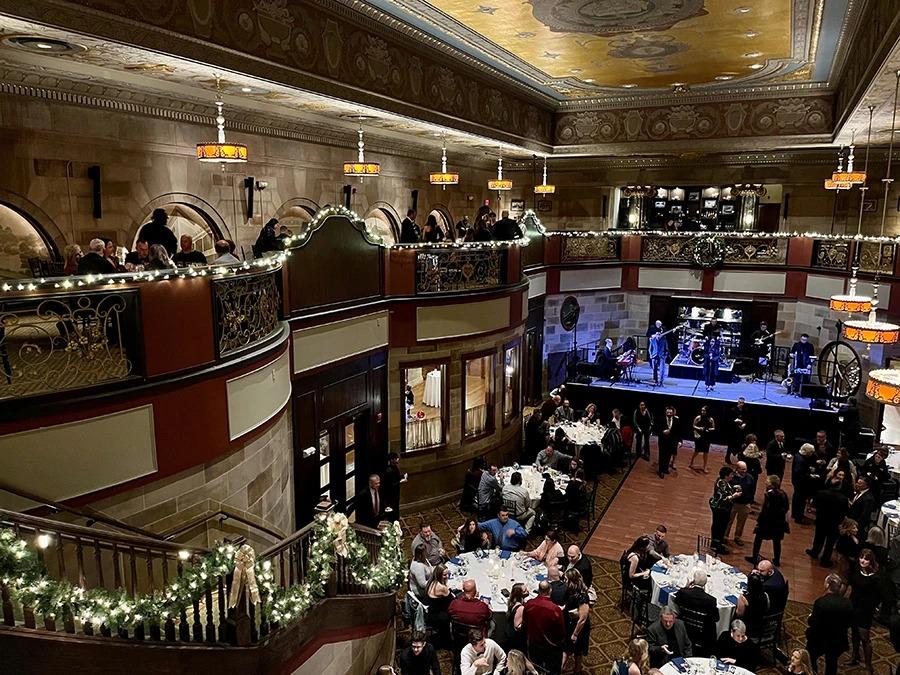 In the glorious Society Ballroom, you’ll find grand marble columns soaring to an exquisitely muraled ceiling, some thirty five feet above the dance floor. A sweeping staircase flows down from the 3,000 square foot balcony, providing a dramatic focal point for grand entrances and photographic opportunities. Marble, limestone, brass and bronze accents adorn the opulent ballroom in a setting right out of the Great Gatsby. Immediately adjacent to the Ballroom are three additional lounge or function spaces, each with their own special historic character, each with their own seating and full-service bar. All of this grandeur is complemented by our own incomparable chefs and banquet staff, ready to custom-tailor a food and beverage presentation which will fulfill the promise of a truly magical event for you and your guests. Let the dream begin. The Society Room: Where Elegance Meets Excellence.
