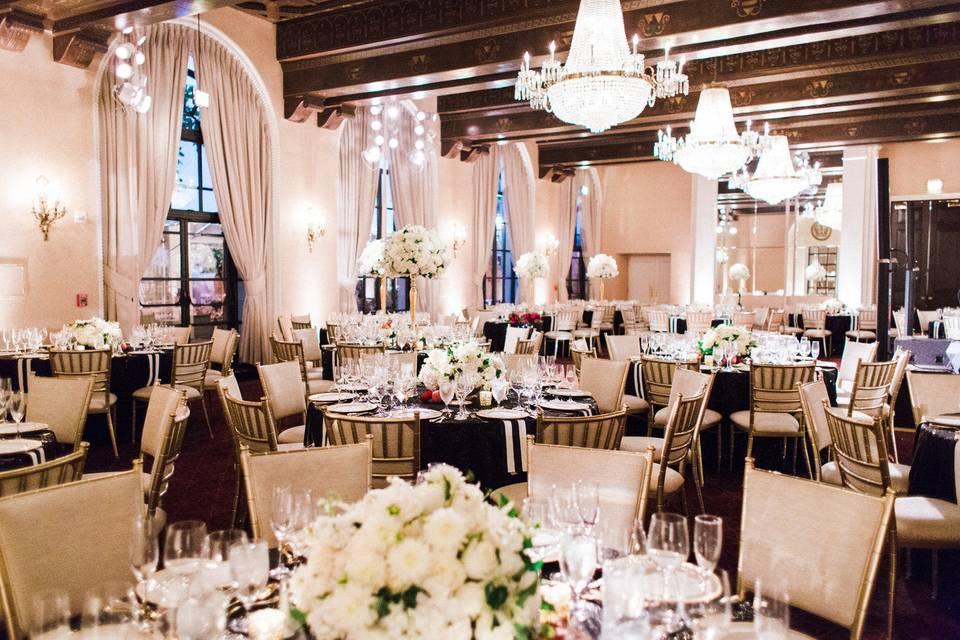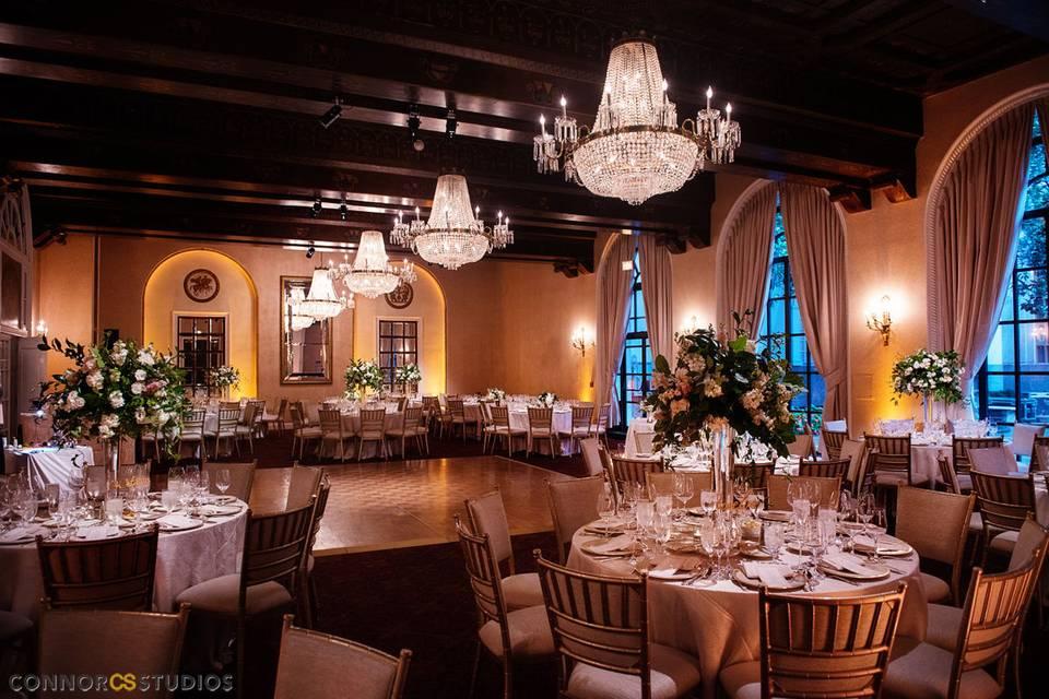 The Astor Ballroom boasts Palladian windows and crystal chandeliers throughout, perfect for a grand affair.