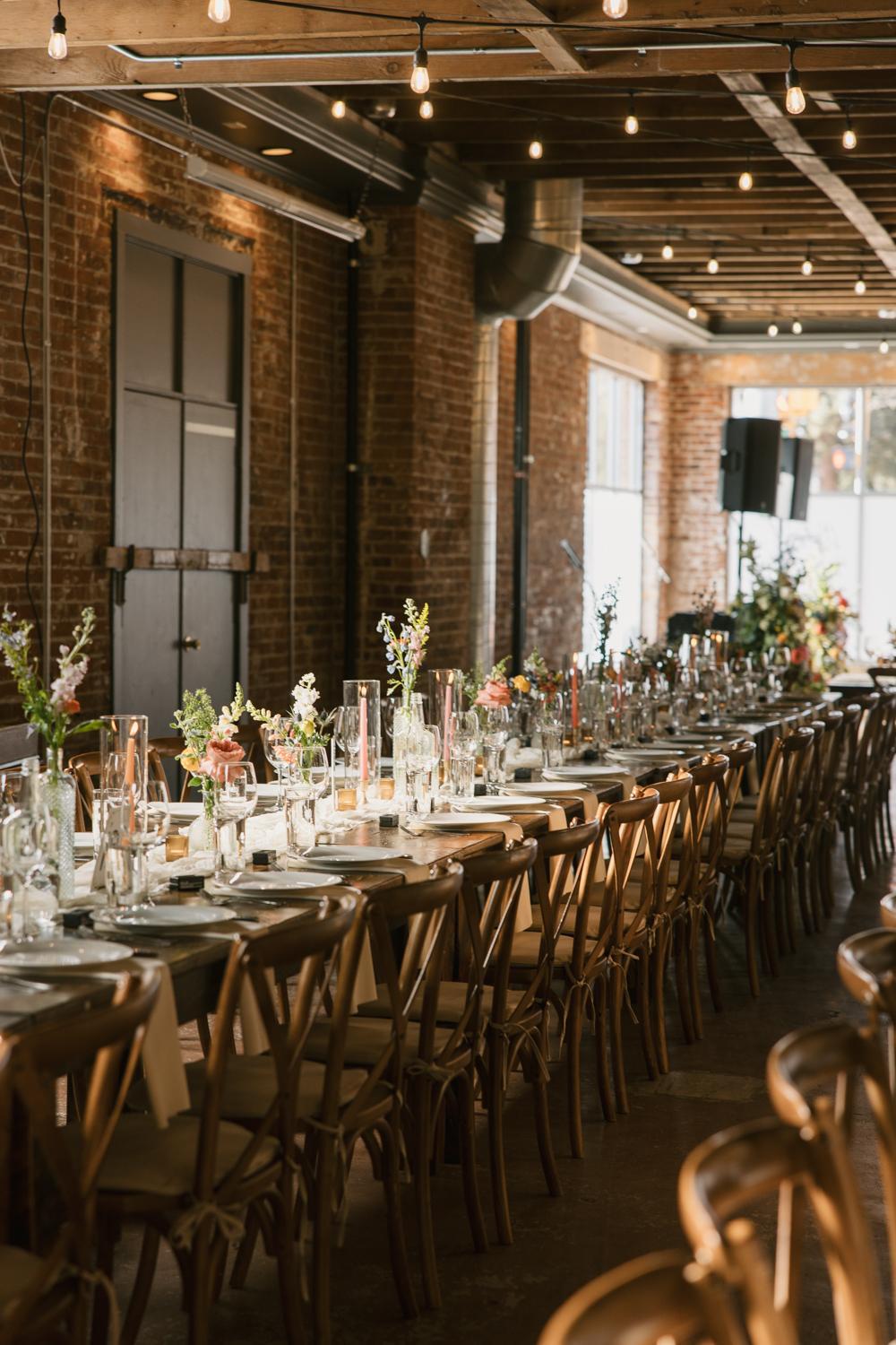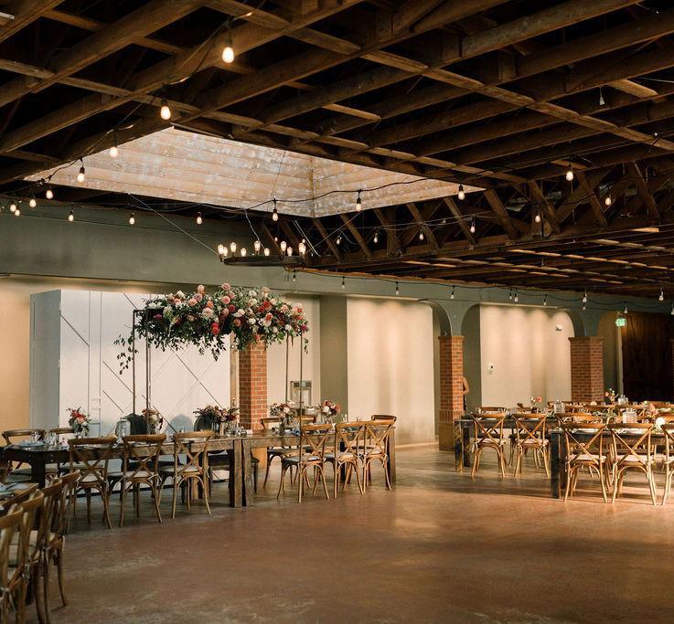 If you’re looking for wedding venues in Boulder Colorado, you’ll die over the charm brick walls, wood ceiling trusses and all the sparkle of crystal chandeliers that make The St Vrain's ceremony space the perfect combination of Industrial LUXE details. Whether your wedding is 100 or 250, your ceremony promises to be both intimate and beautiful! Think industrial wedding venues that give you a beautiful canvas to customize! An oversized vintage garage door adds to the warmth and charm of the bygone era of the early 1900s. Whether you have a wedding of 100 or 250 the space is flexible enough to make both you and your wedding guests feel right at home.