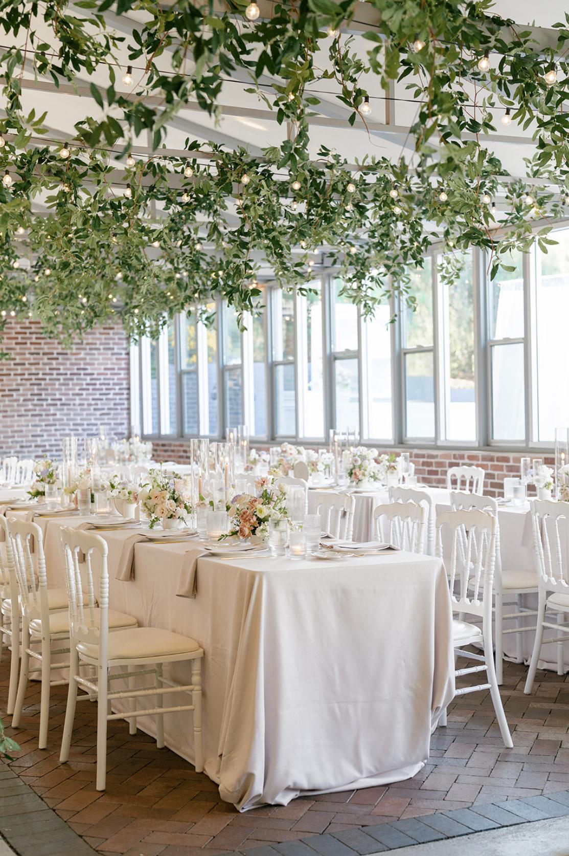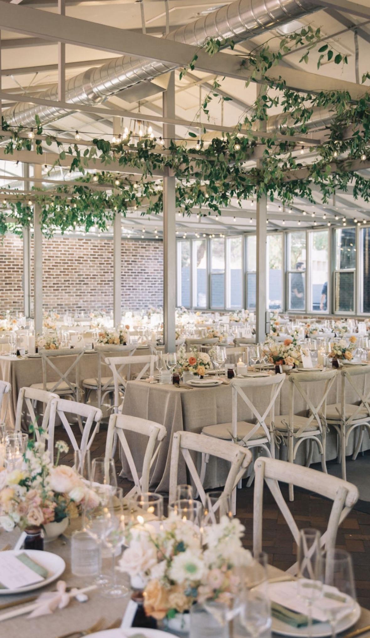 Step into our stunning greenhouse, where modern elegance meets lush natural beauty. Floor-to-ceiling glass windows, exposed brick, vintage chandeliers, and abundant natural light create a breathtaking backdrop for your special day. With panoramic views of our gardens, this romantic space is perfect for a luxurious garden reception. Capacity for 175 guests for receptions and 200 for ceremonies. Experience the most stunning and romantic garden style wedding inside the greenhouse.