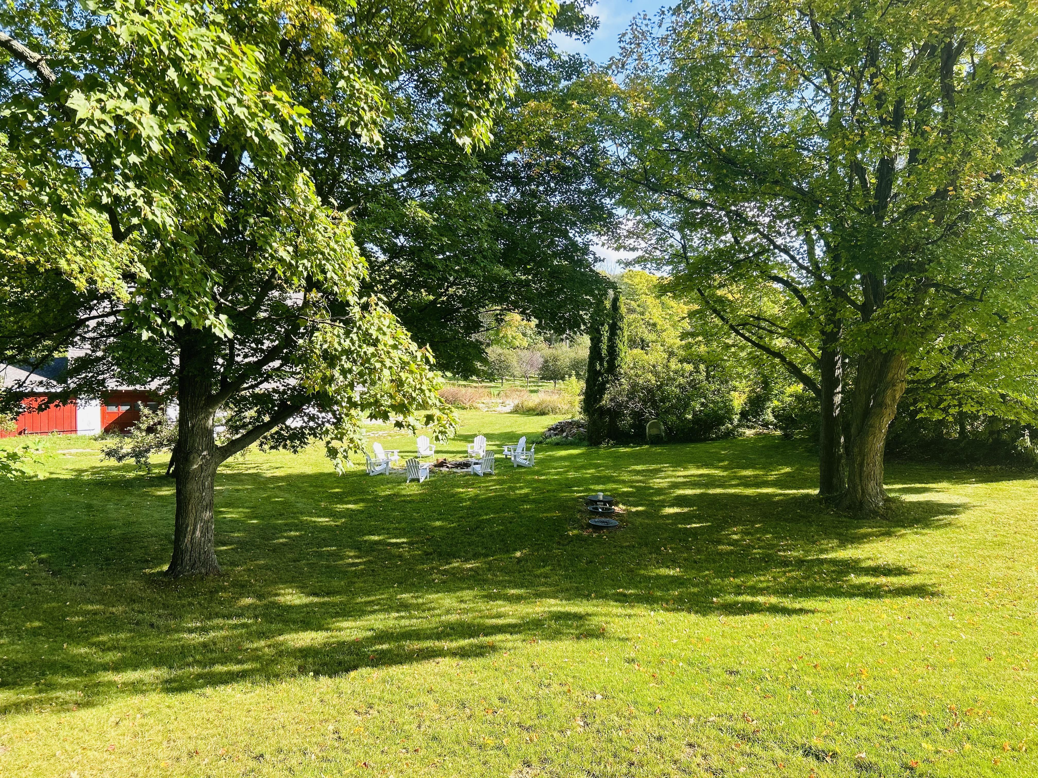 Open space for tent or open air reception that is nestled between our historical home, renovated barn and cherry orchard.