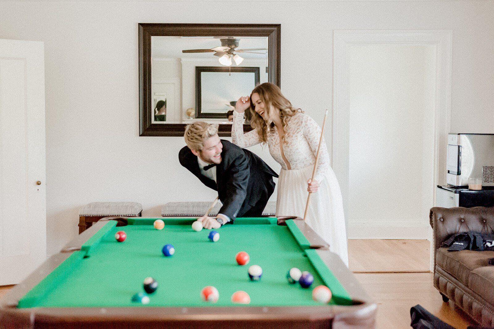 Two rooms upstairs are great spaces for your bridal party to relax, make memories, take photos, and get ready. Plenty of mirrors to go around in the bridal suite as well as seating and a stunning dressing room en suite. The guys suite boasts of a dart board, pool table, and tv.