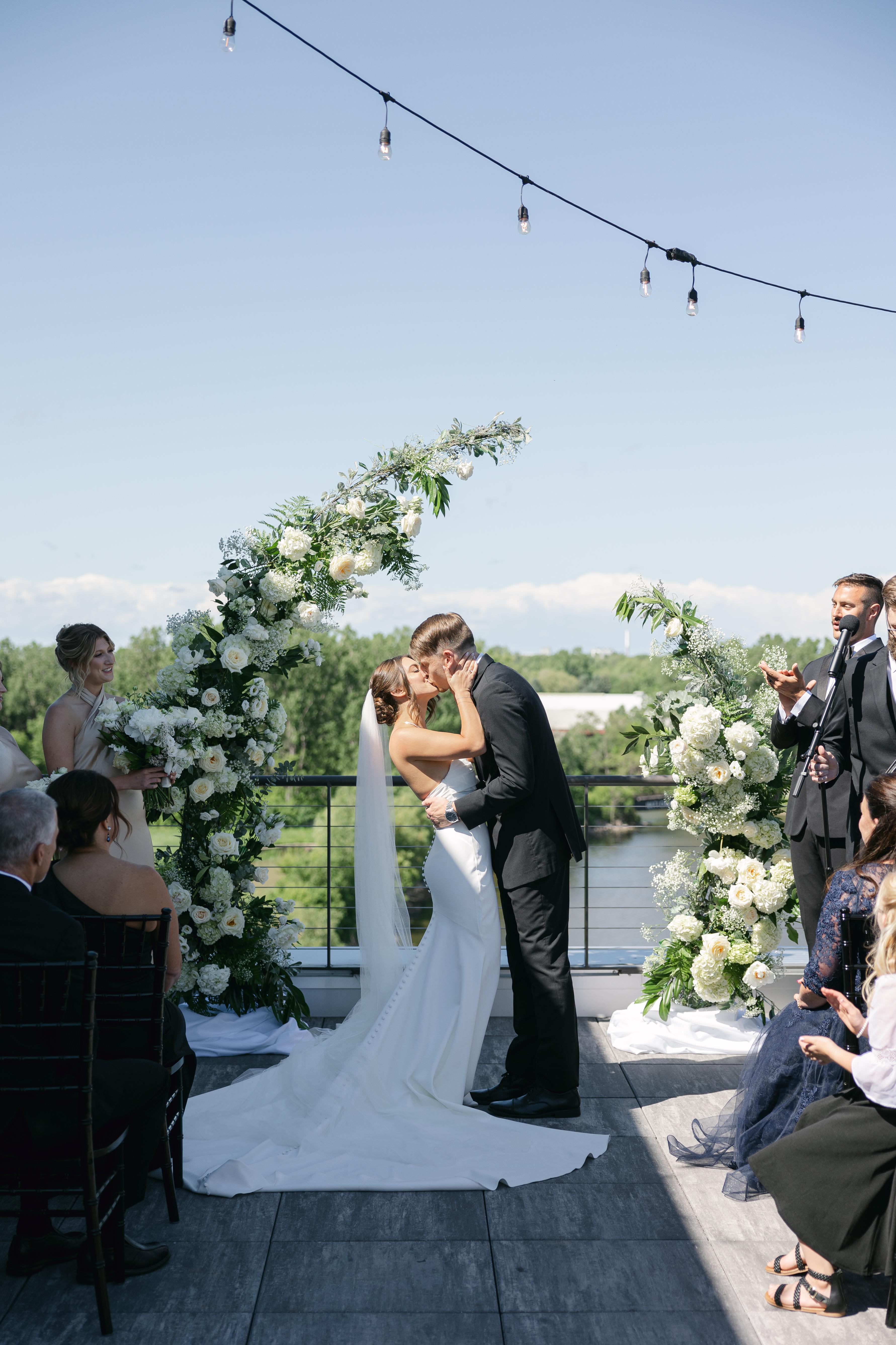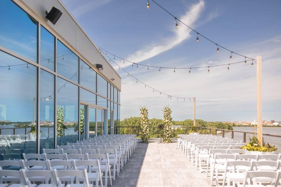 The Terrace At Marina Circle is a rooftop wedding venue located in Green Bay, Wisconsin. Sitting atop the Marina Circle complex and surrounded by majestic vistas of Green Bay's bright city lights, this urban event facility is the perfect spot for sensational, sky-high "I dos."