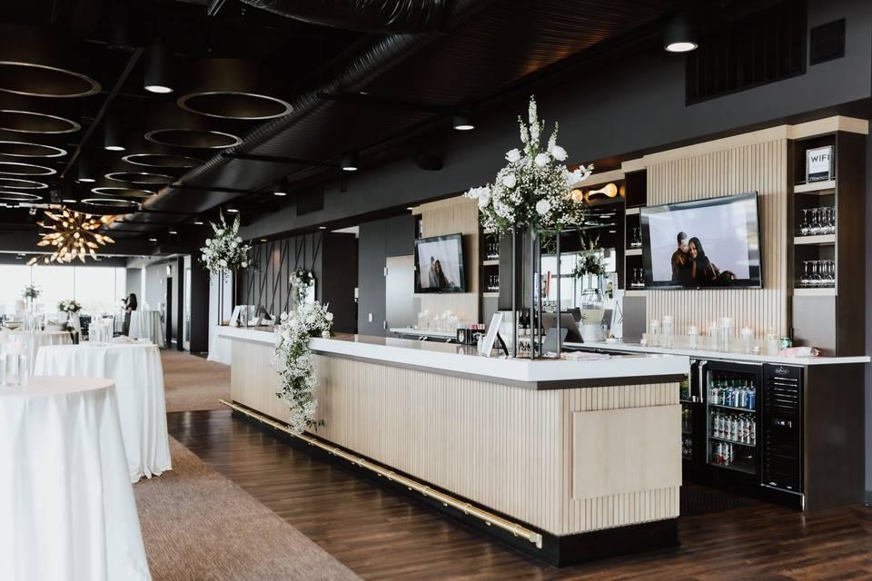 The Terrace At Marina Circle makes for opulent, out-of-this-world wedding celebrations with its sleek and modern design. With black-painted walls, crystal chandeliers, and contemporary, minimalist furniture, couples and guests get an experience in the lap of luxury. A large event facility, The Terrace At Marina Circle stretches over 2,000 square feet and hosts a variety of spaces for nuptial events of up to 225 guests. Al fresco love declarations can take place on the outdoor stone terrace against the backdrop of the swift Fox River and mighty Expressway Bridge. As the buzz of the cocktail reception kicks in, guests can retreat to the glamorous indoor bar where they can mingle with premium house drinks in hand. The Terrace's indoor reception area welcomes everyone with open arms for a dazzling after-party. Featuring floor-to-ceiling windows, everyone can dine and dance next to stunning views of Green Bay's grand and impressive skyline.