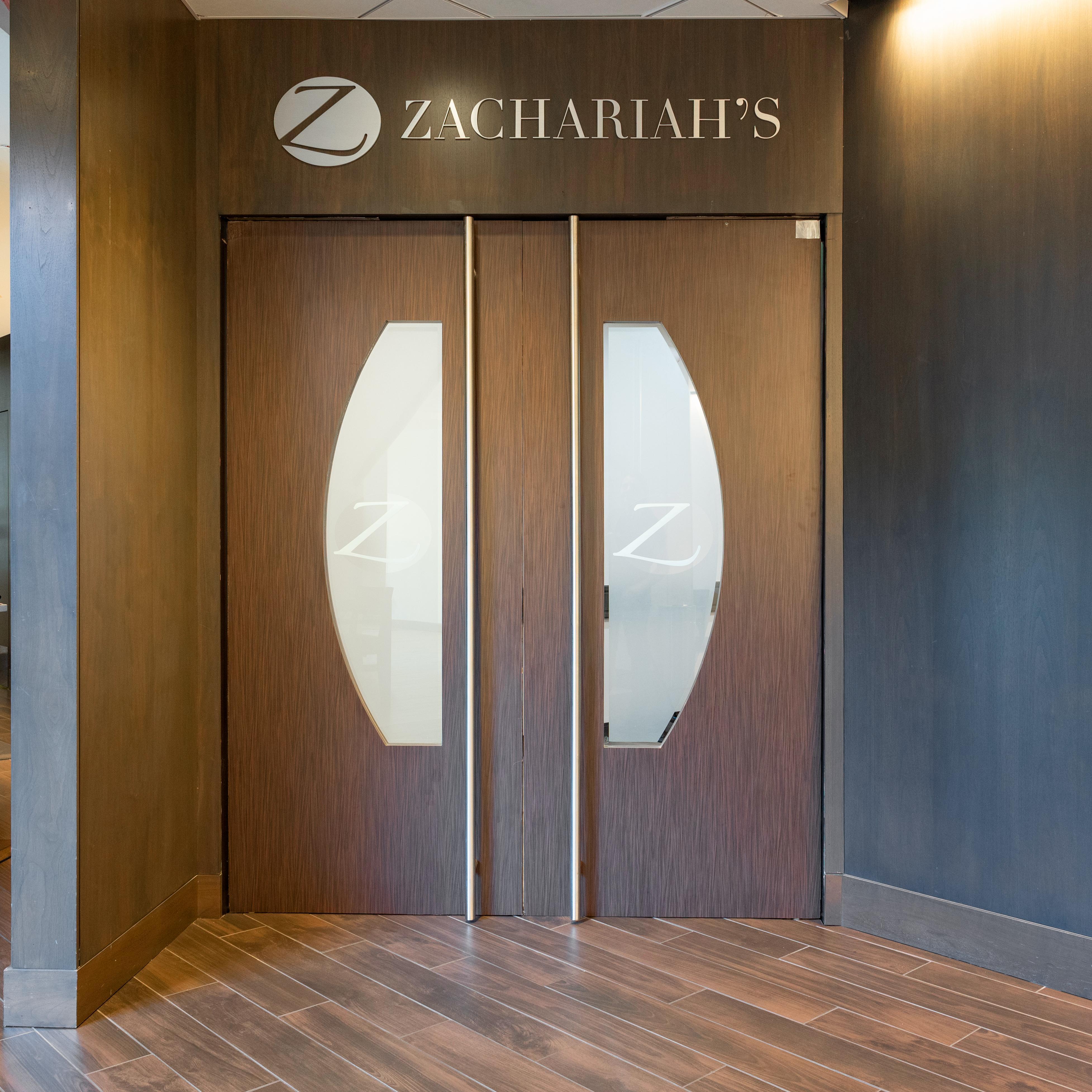 Zachariah’s dining room is the event space for 50 to 125 guests. It hosts built-in curvaceous serving bars as well as an LED color glass wall that can be customized to fit the look and feel of your event. Zachariah’s is a popular option for weddings, bridal and baby showers, and Bar or Bat Mitzvahs.