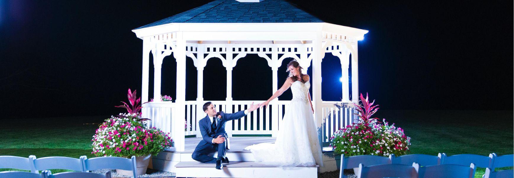 Just outside our reception room, amidst our beautifully landscaped gardens, sits our stunning white Gazebo, a glorious place for your wedding ceremony.