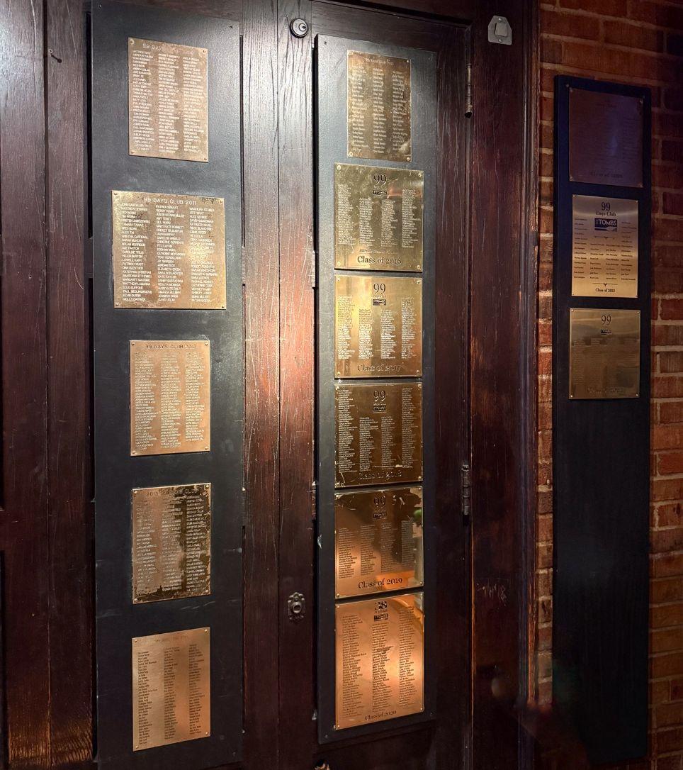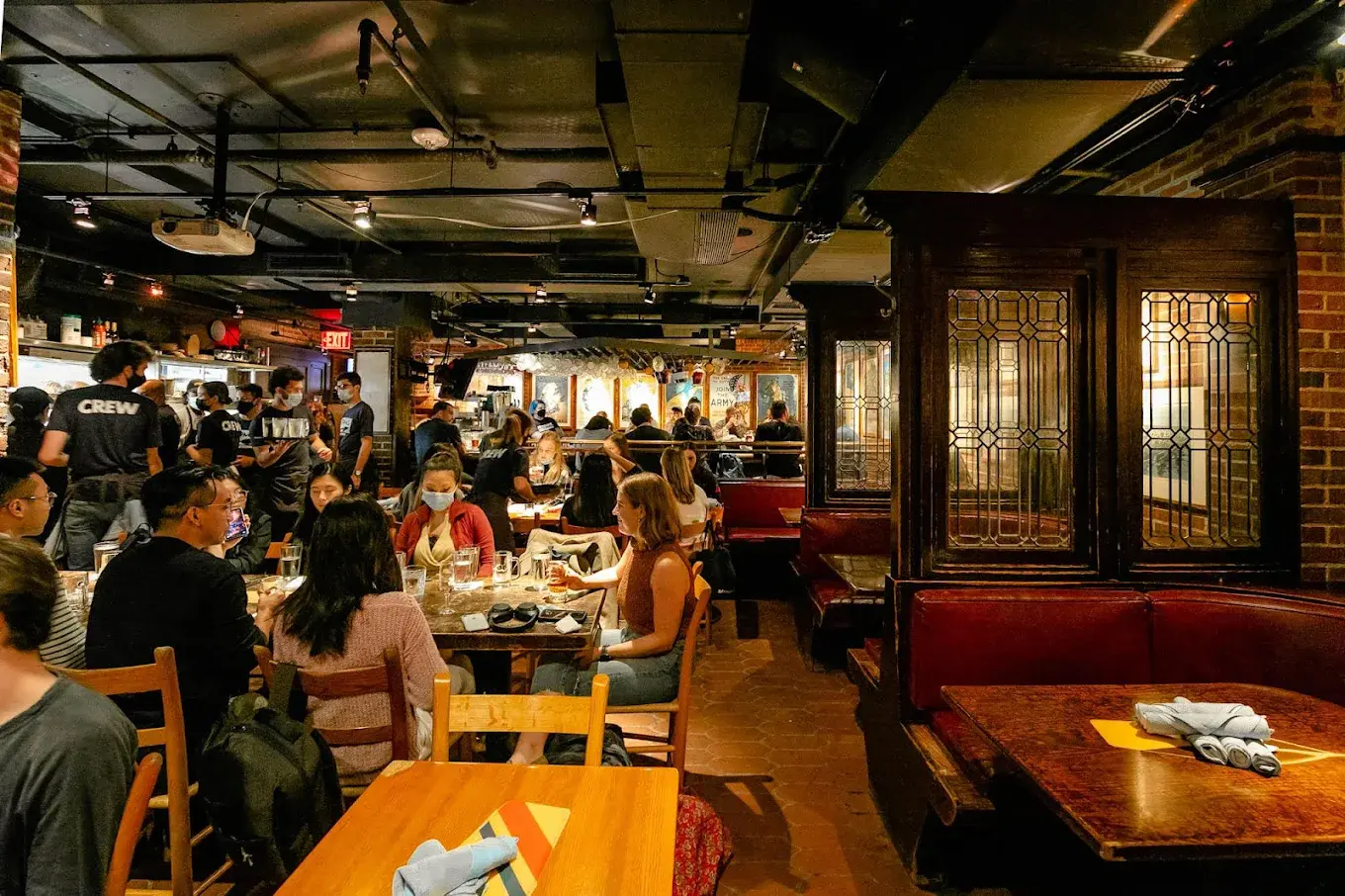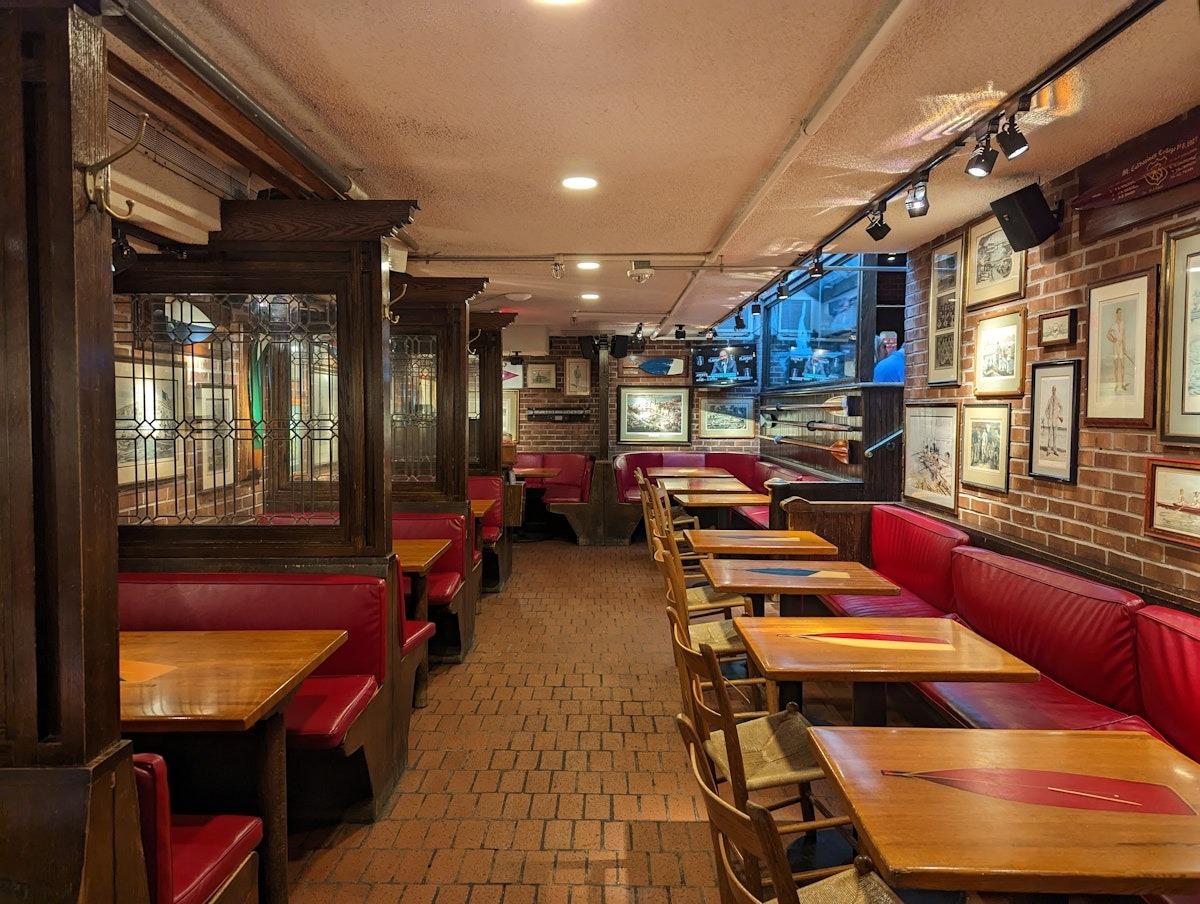 Nestled within the vibrant atmosphere of The Tombs, "The Sweeps" offers a charming semi-private dining experience perfect for your next event. This inviting space, characterized by classic wooden booths and comfortable red banquettes, provides a cozy yet lively setting. Adorned with vintage rowing memorabilia and distinctive artwork, The Sweeps exudes the historic charm and collegiate spirit that The Tombs is famous for. Guests will enjoy the intimate feel of their own dedicated area while still being able to soak in the beloved ambiance of our Georgetown institution.