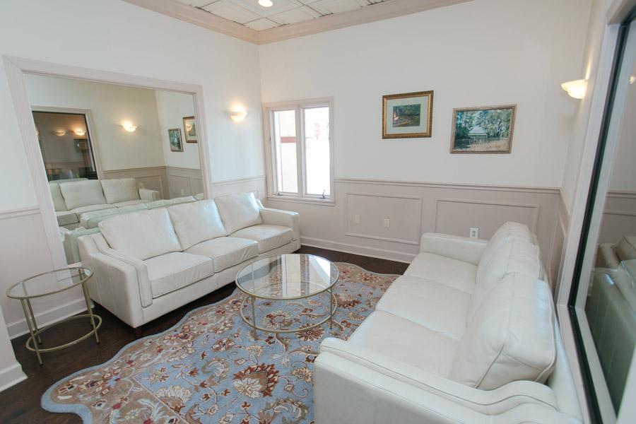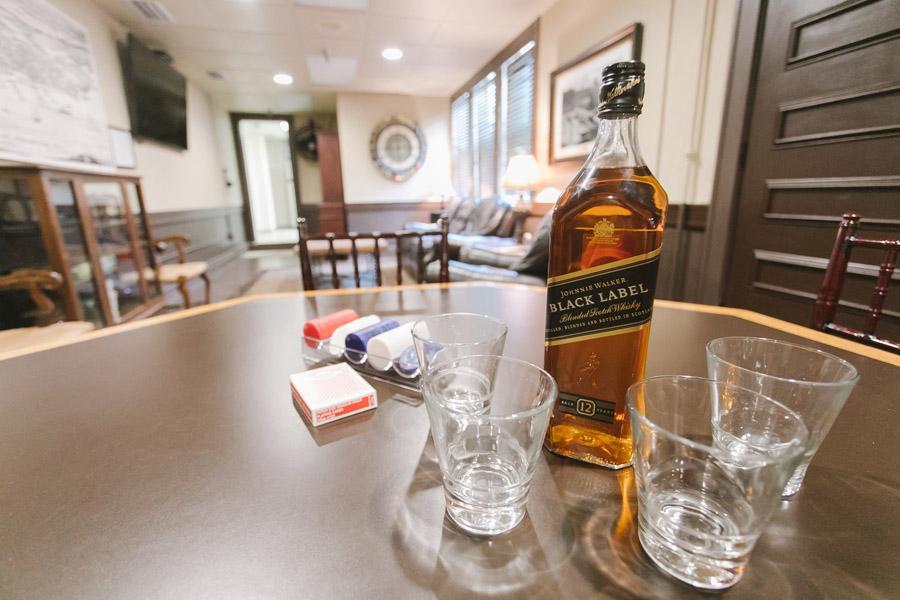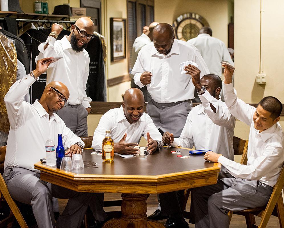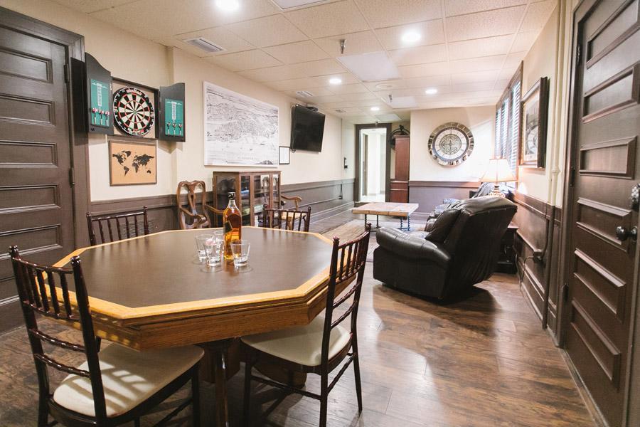 Located just off of the Grand Ballroom, The Plaza Lounge is one of The Treasury’s two private suites. The spacious room features makeup stations, floor-to-ceiling mirrors, a lounge seating area, a private bathroom, and a kitchenette. The Banker’s Lounge is the second of our two private suites. This warm and entertaining suite is outfitted with comfortable leather couches, a poker table, a dartboard, a flat-screen TV, a private bathroom, and a large kitchenette.