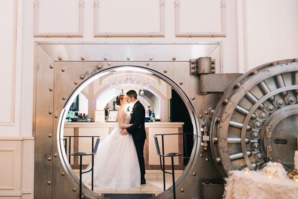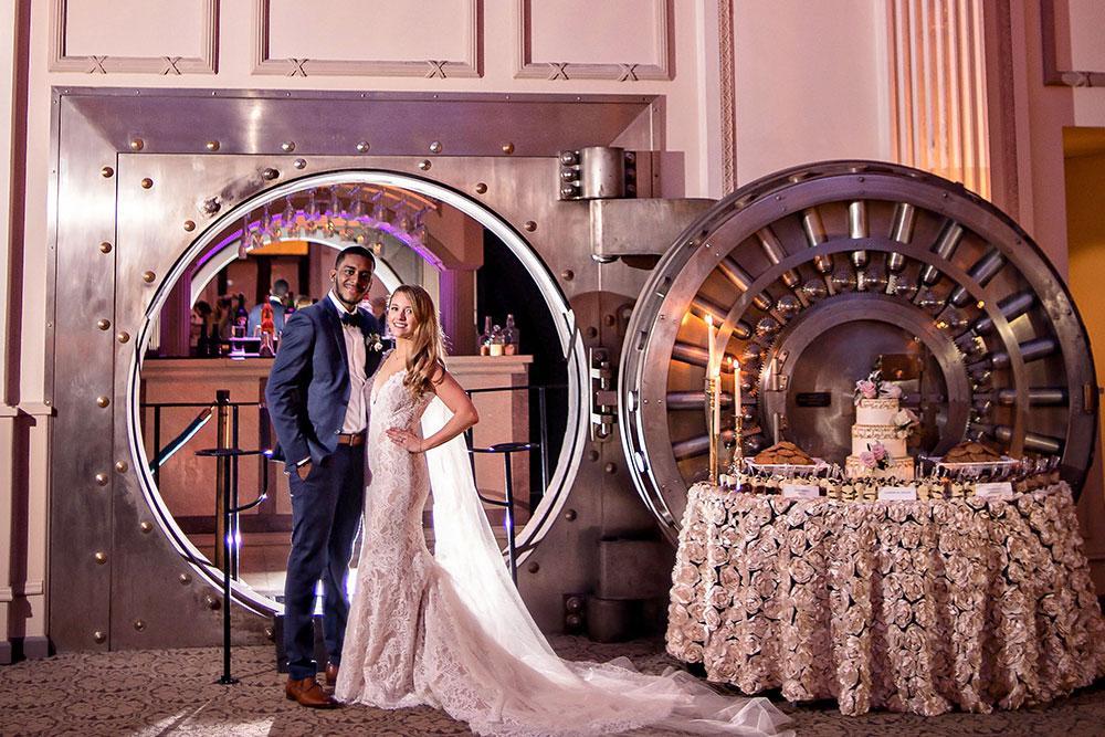 In the center of the Grand Ballroom is one of The Treasury’s most unique spaces. The Vault Bar is a marble and granite bar housed inside the original 1927 bank vault. With its low lighting and historic touches, The Vault brings to mind a prohibition-era speakeasy. The Treasury bar team will serve up delicious drinks throughout the reception that even Al Capone would find satisfying! Make sure to check out our bar packages for all of the amazing options!